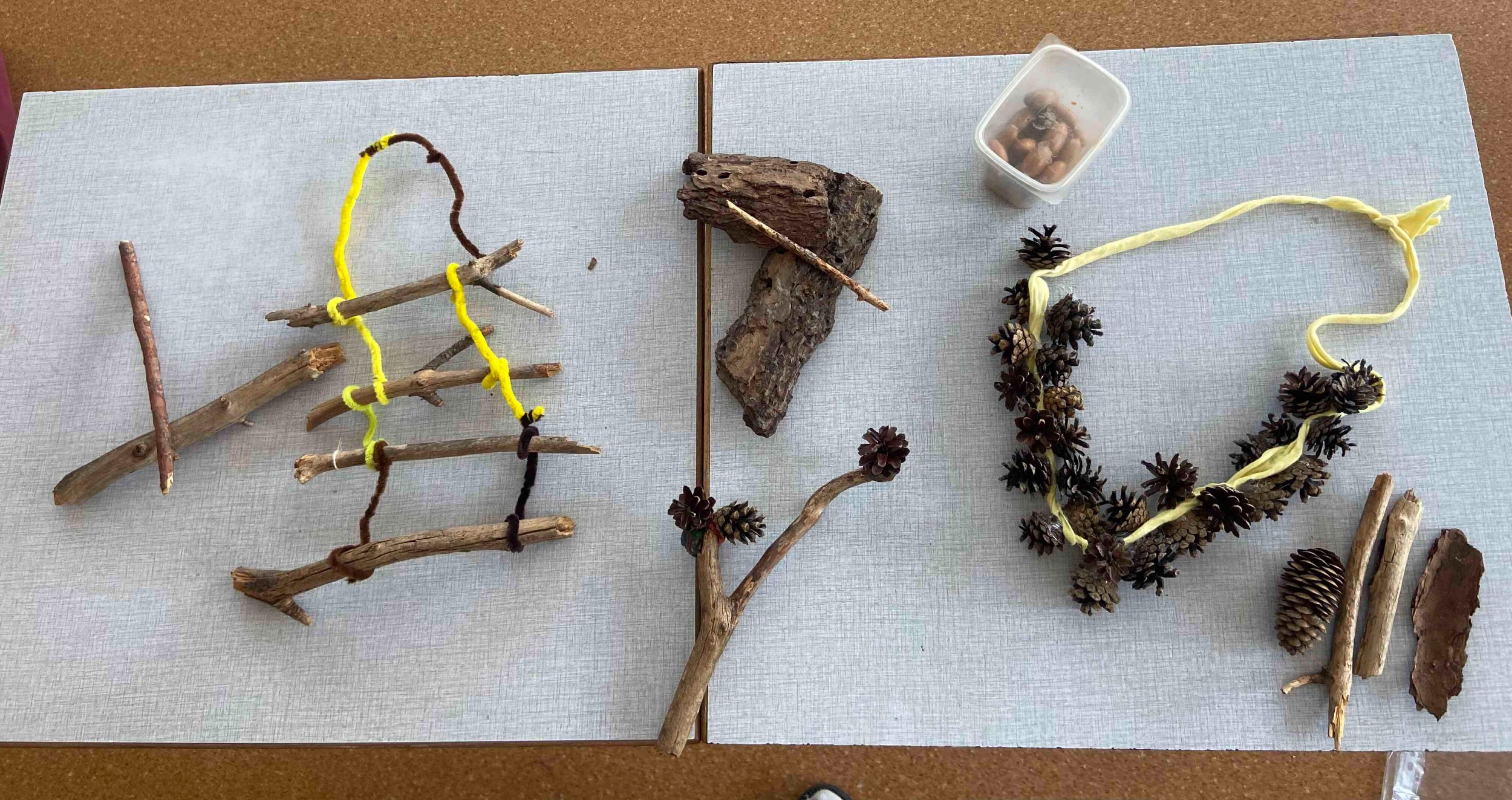 Eksperimentējām, klausījāmies un pētījām, kā katrs materiāls skan – berzējām, klauvējām, kratījām un sitām ritmu. Atklājām, ka čiekuri lieliski noder grabulīšiem, zari pārtop par ritma kociņiem, bet mizas rada interesantas, čaukstošas skaņas. Izveidojām pat nelielu orķestri un kopā nospēlējām savu pirmo “meža koncertu”!