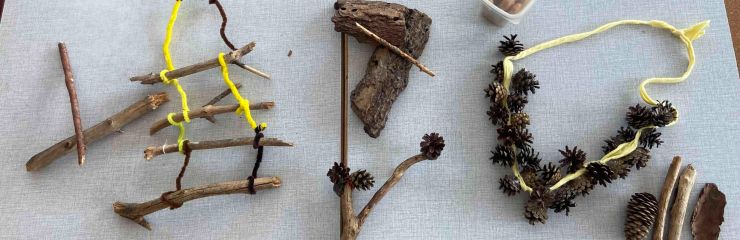 Tavi detektīvi – 10. grupas bērni – ar lielu prieku turpina darboties Cūkmena programmā. Kamēr vēl nebija dziļa sniega, devāmies uz mežu un čakli savācām dabas materiālus. Salasījām čiekurus, dažādus zarus un koku mizas. No šiem dabas dārgumiem veidojām paši savus mūzikas instrumentus.
