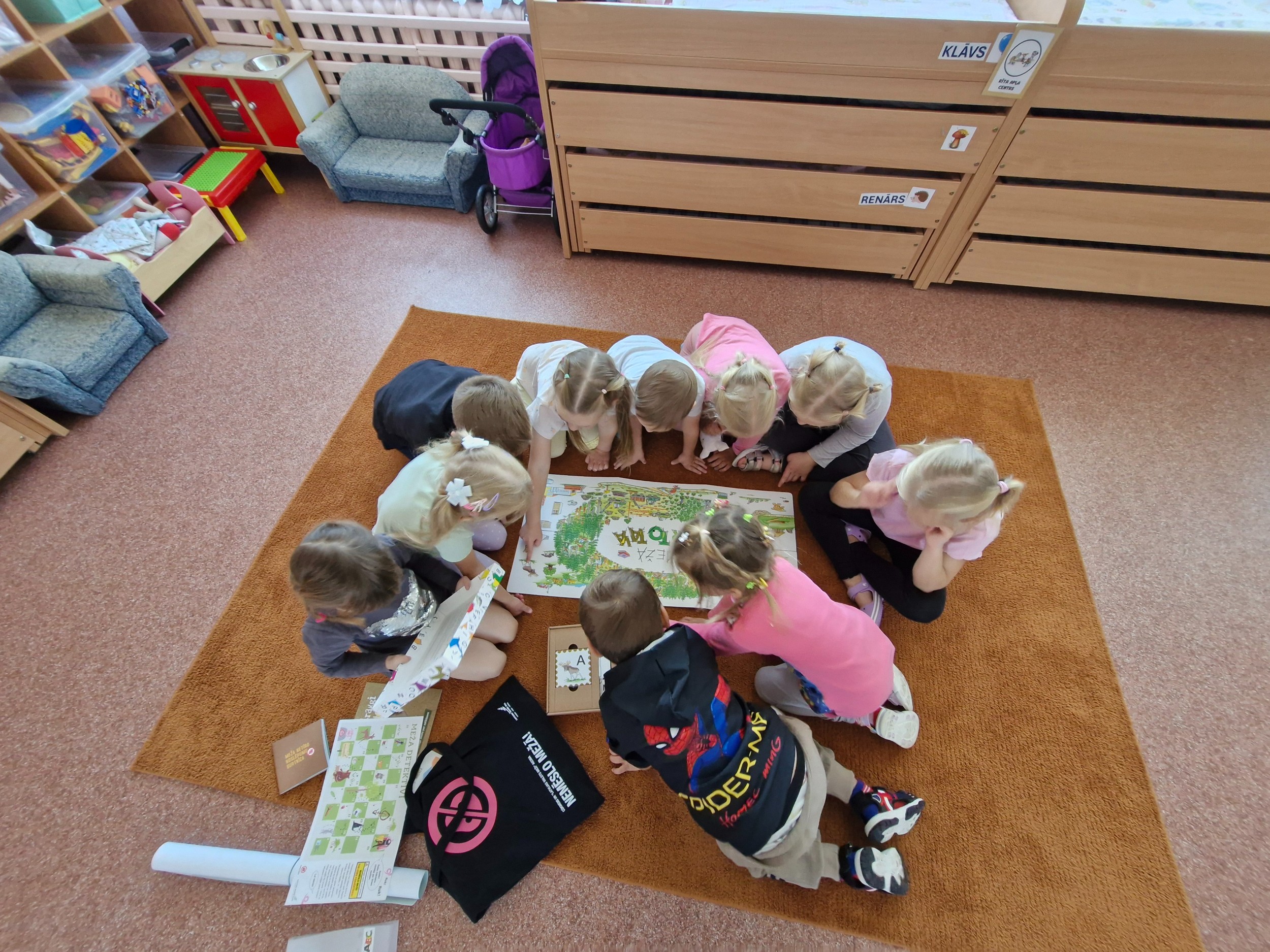 Sveiks, Cūkmen! Sūtām tev dažas bildītes no mūsu detektīvu gaitām. Aktīvi darbojamies un pārrunājam par atkritumiem, kur ir tiem paredzētā vieta. Šobrīd aktīvi mācāmies dejas soļus, lai jau nākamreiz varētu nosūtīt arī video.