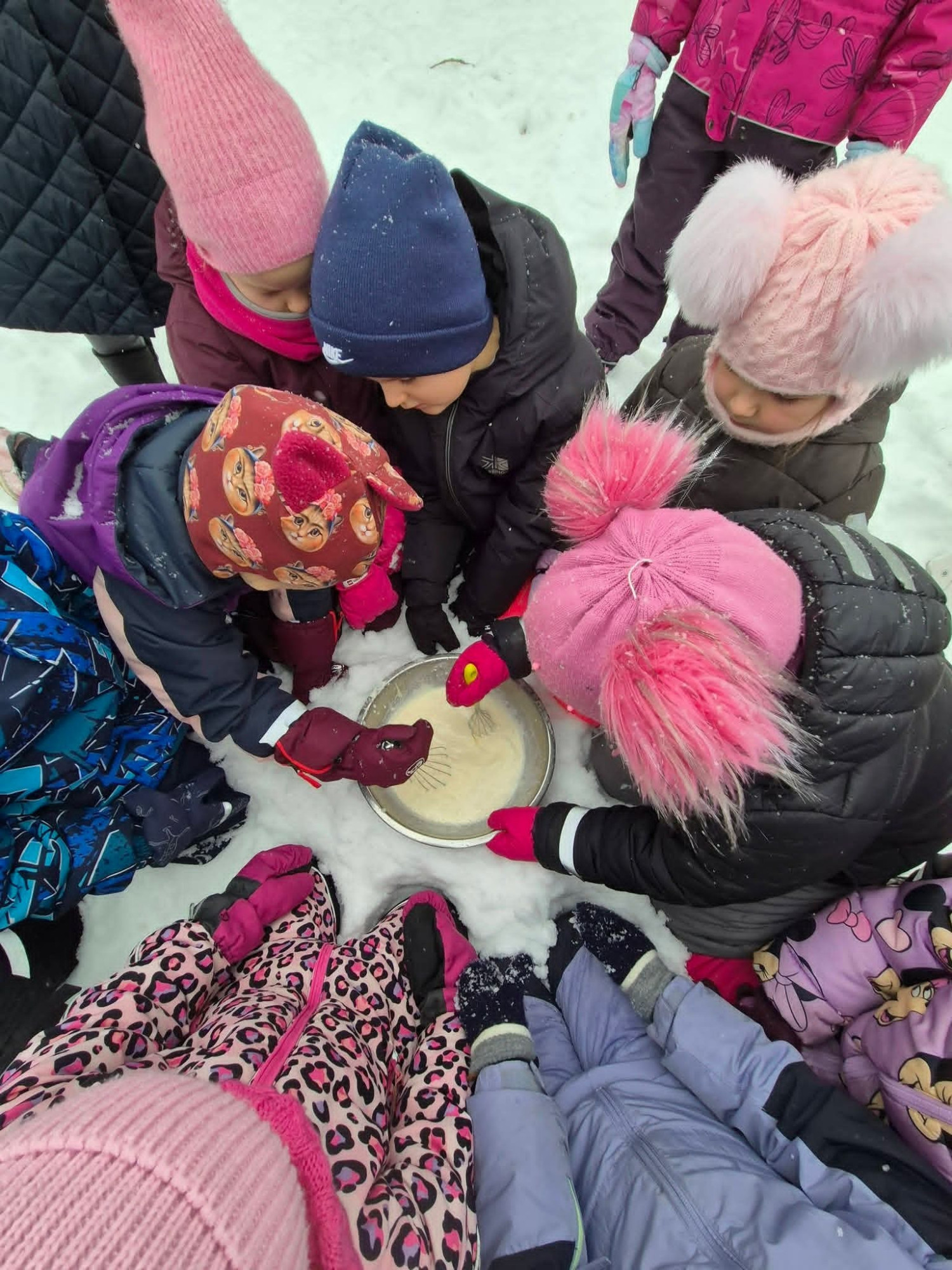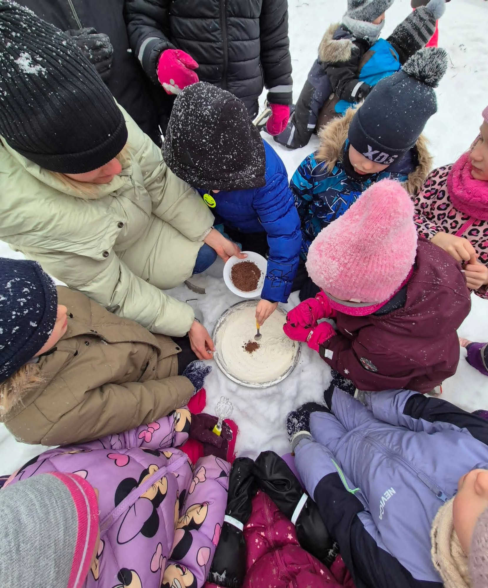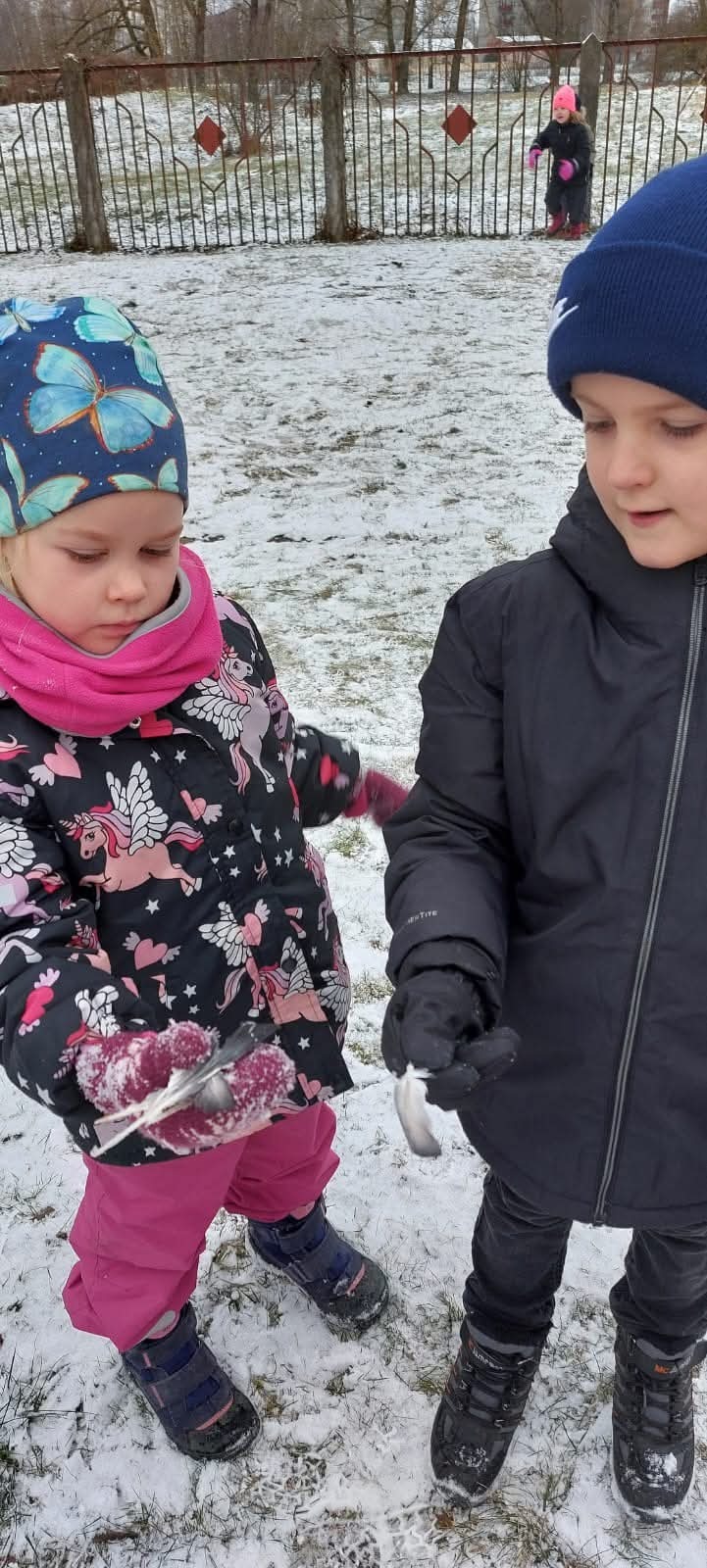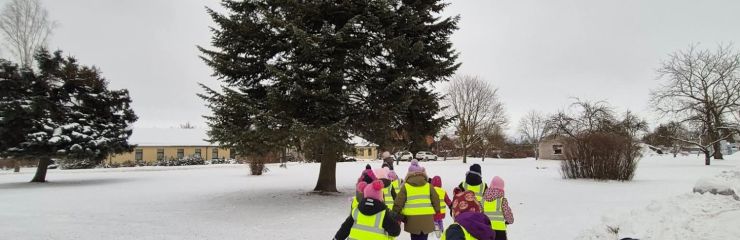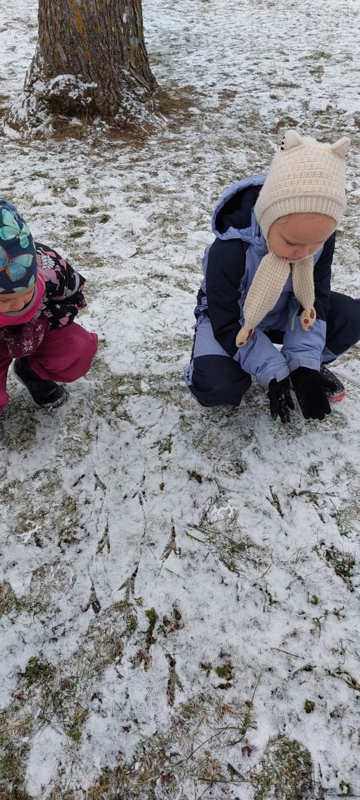 Grupiņas laukumiņā ieraudzījām putnu pēdas. Pētījām tās un domājām, kas tas varētu būt par putnu. Nolēmām pagatavot putnu barotavu.