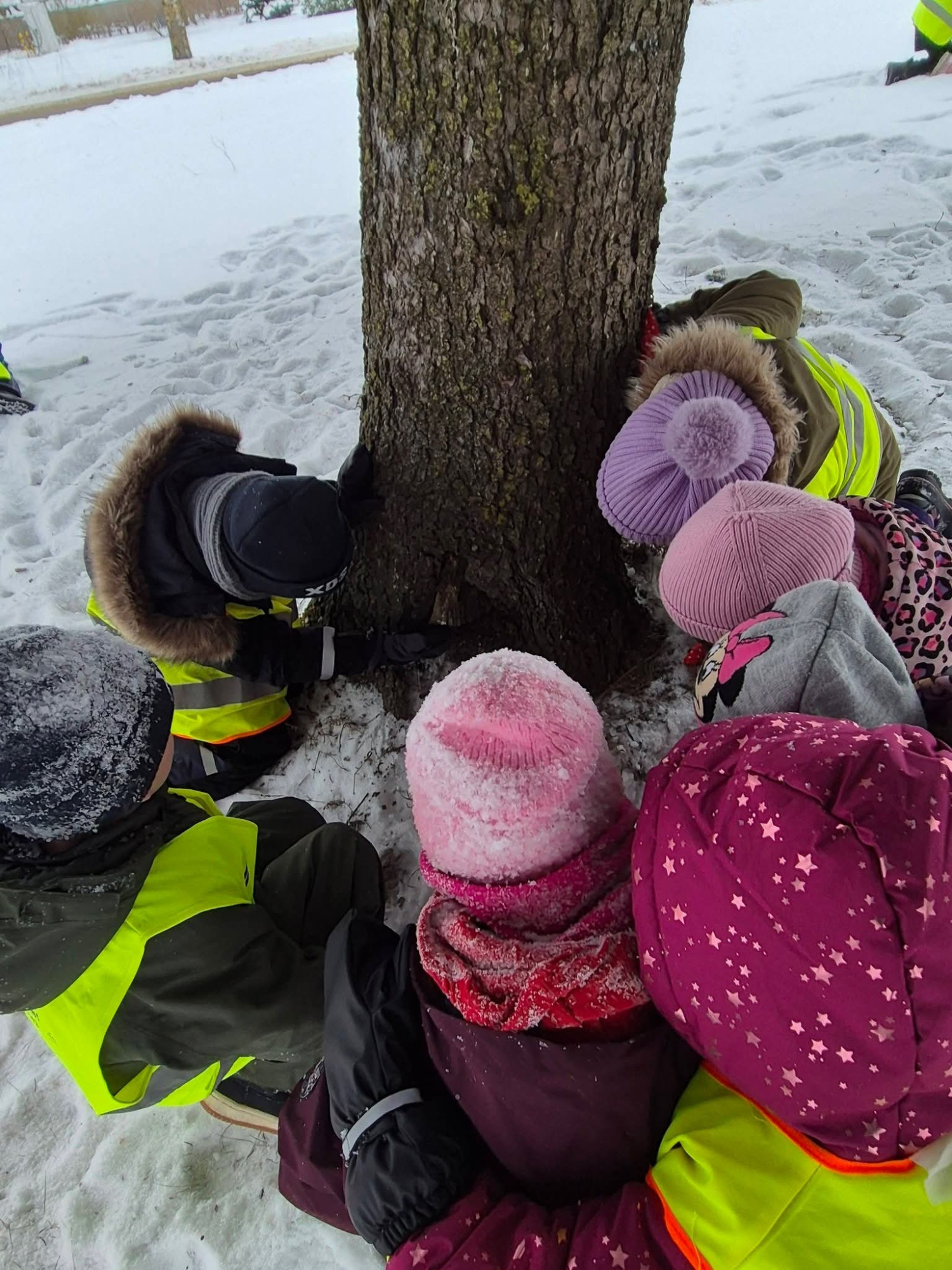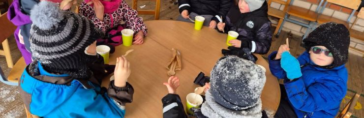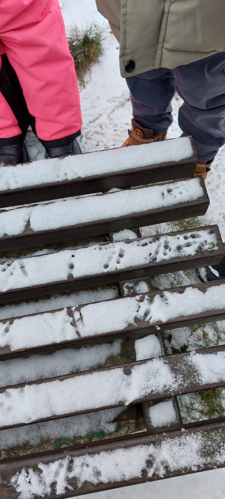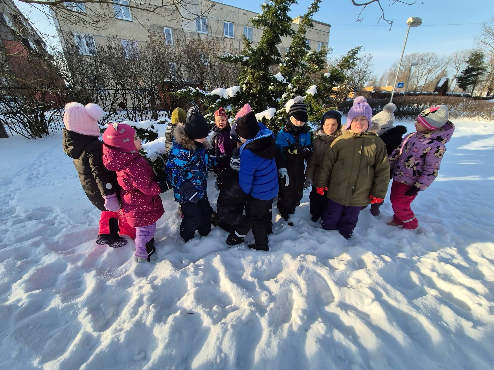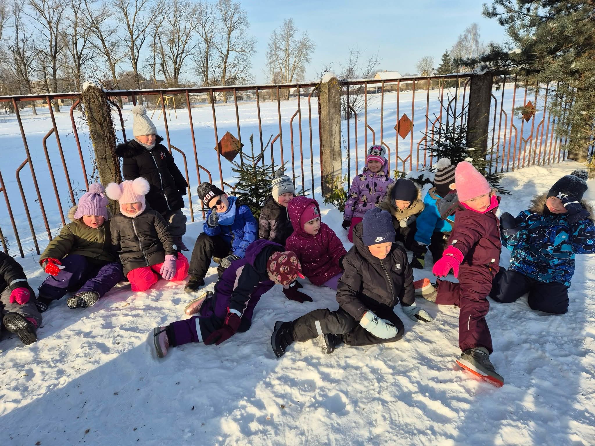 Grupiņas laukumiņā ieraudzījām putnu pēdas. Pētījām tās un domājām, kas tas varētu būt par putnu. Nolēmām pagatavot putnu barotavu.