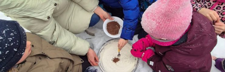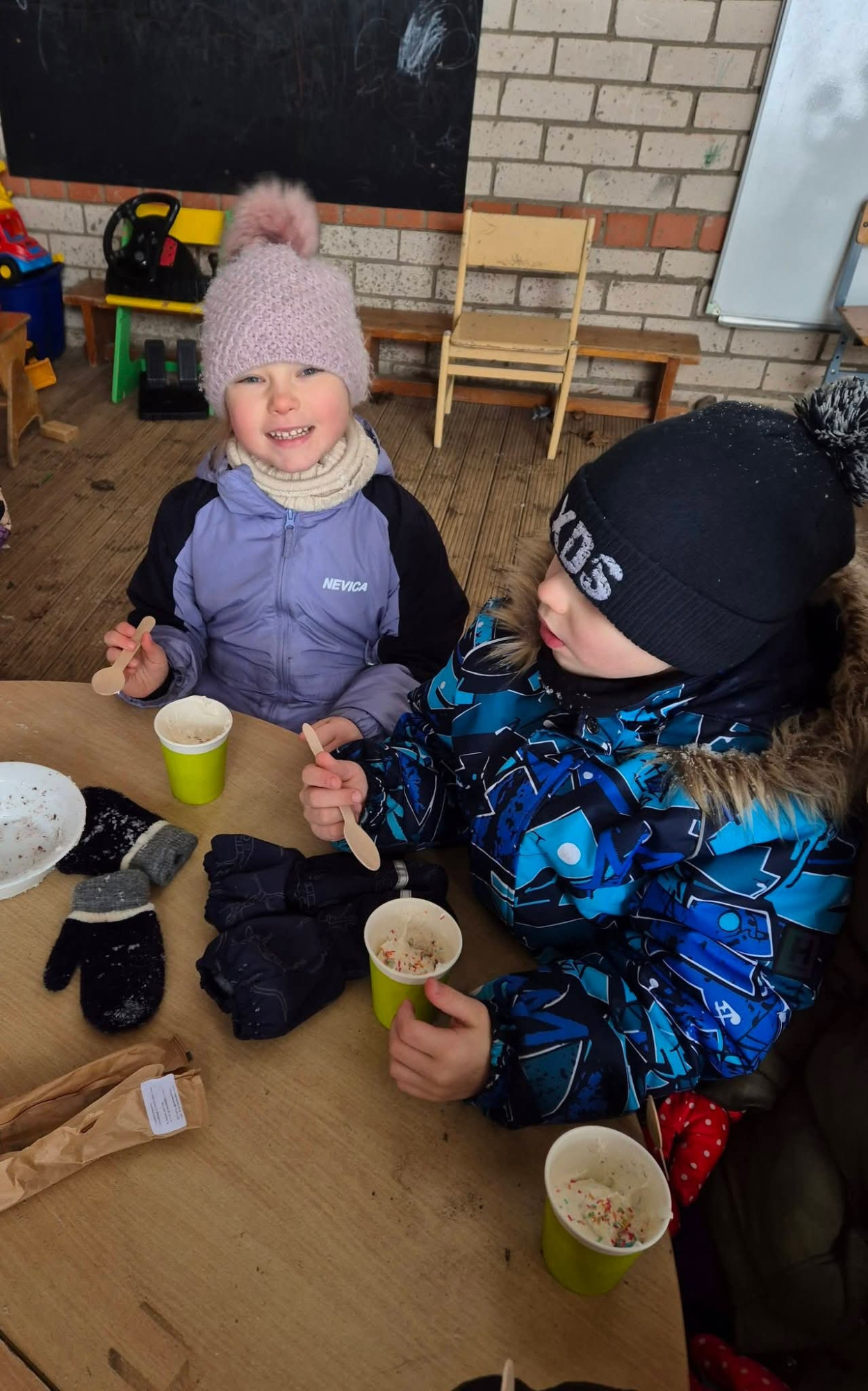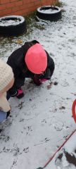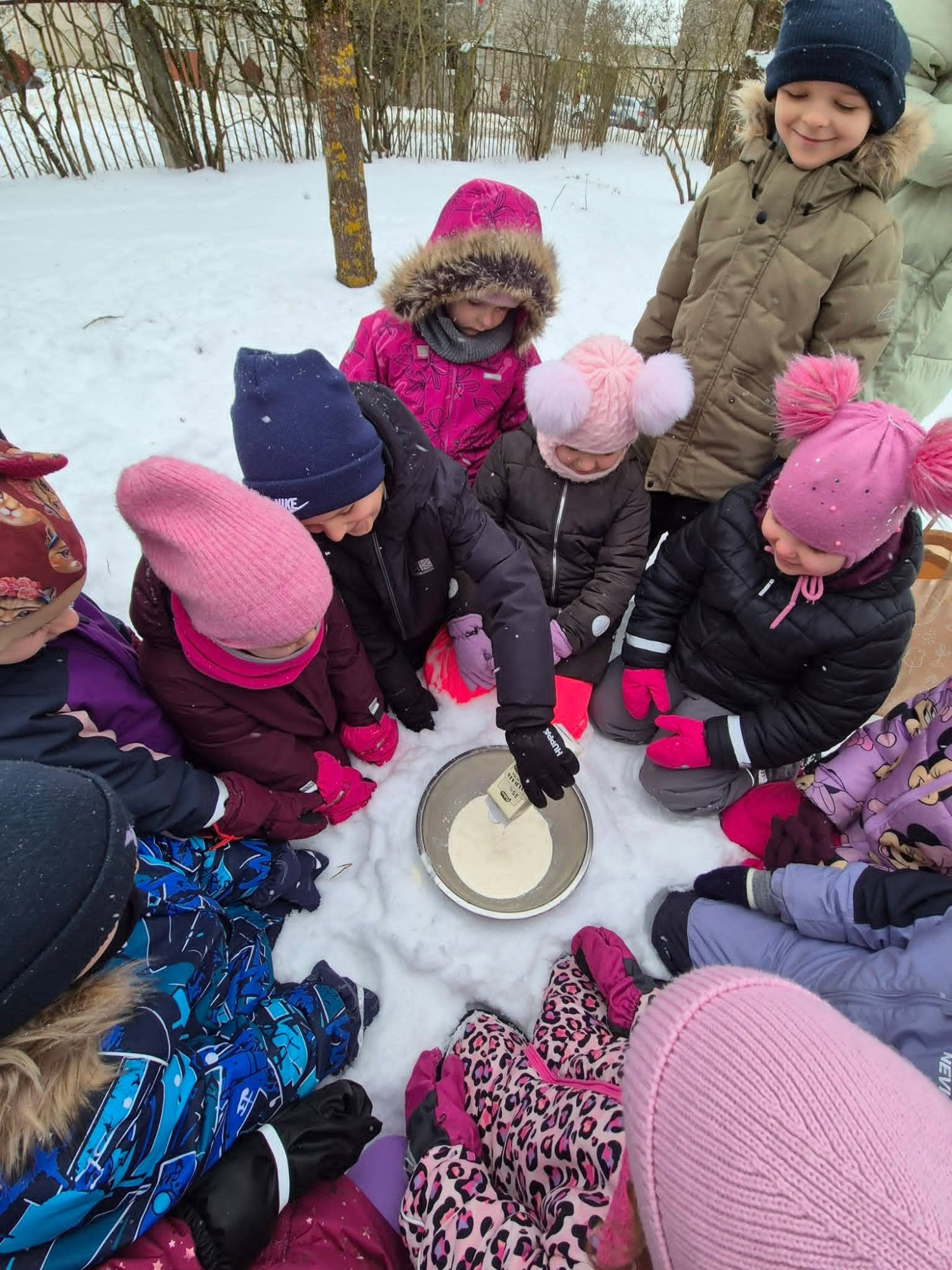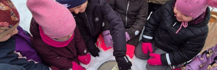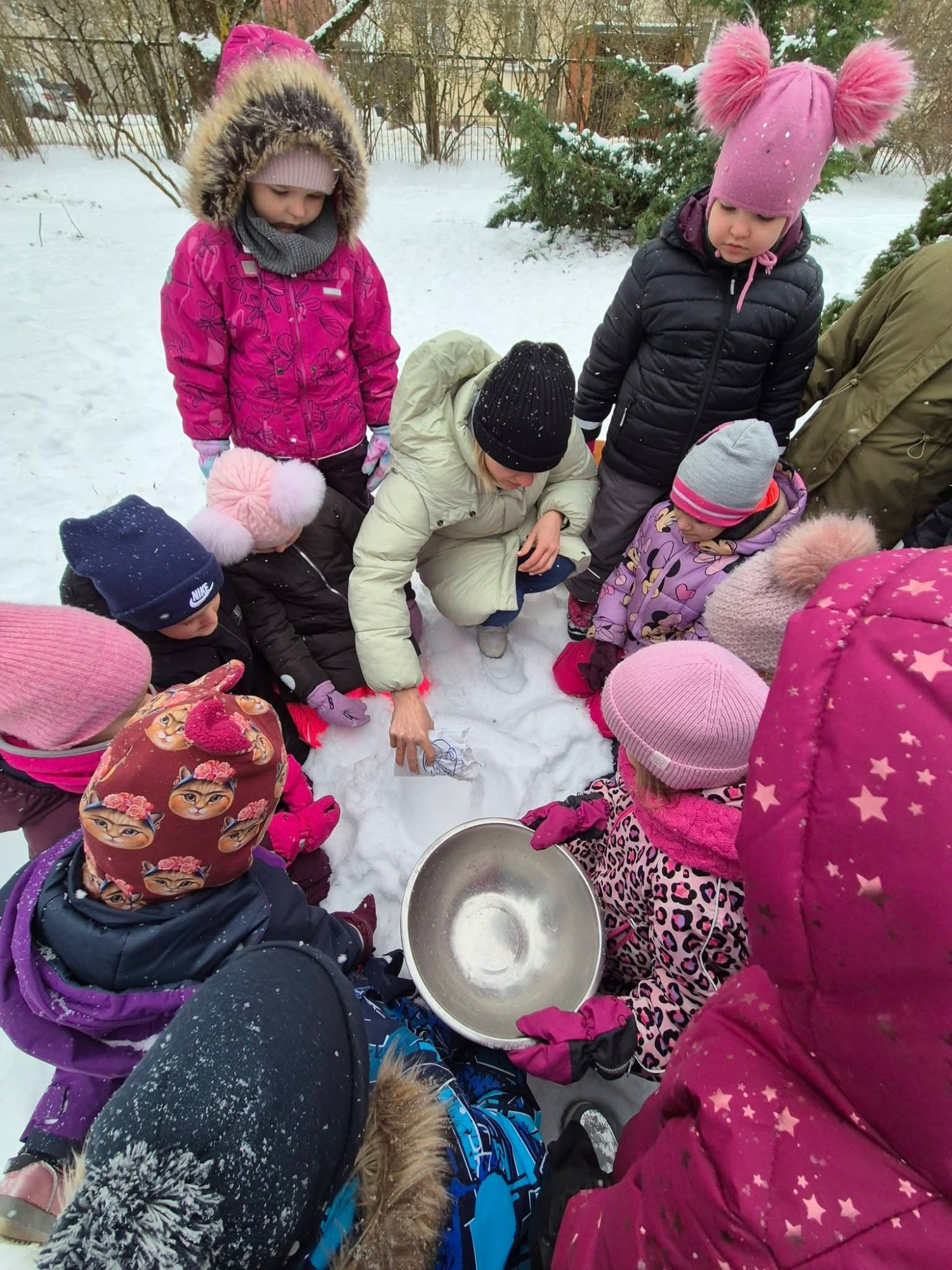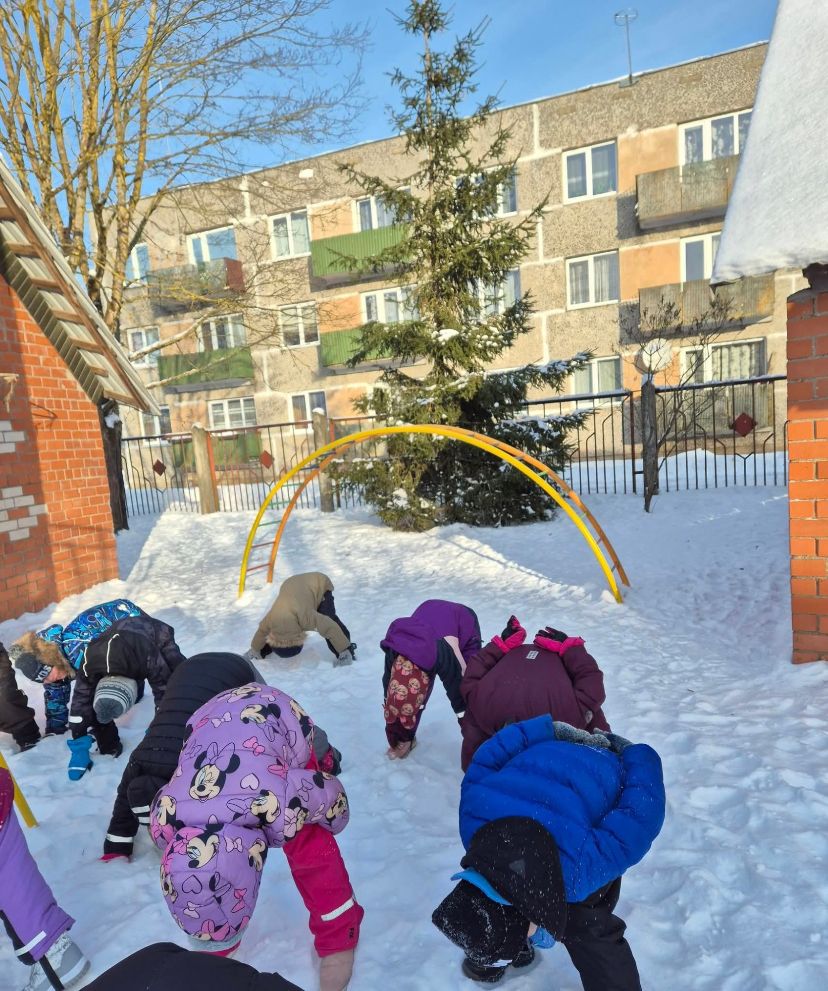 Grupiņas laukumiņā ieraudzījām putnu pēdas. Pētījām tās un domājām, kas tas varētu būt par putnu. Nolēmām pagatavot putnu barotavu.