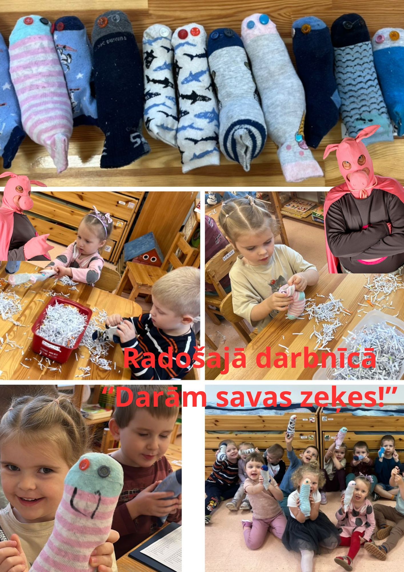 Katrs bērns uz bērnudārzu atnesa savu zeķi, ko kopā ar skolotājas palīdzību pārvērta par rotaļu draugu. Zeķes tika piepildītas ar papīra strēmelēm, pielīmētas pogas kā actiņas, uzzīmēti smaidīgi vaigi, un katra lellei ieguva savu īpašo vārdu. Bērnu iztēle un radošums darbojās pilnā sparā – katra lelle bija citāda, pilna rakstura un prieka!
