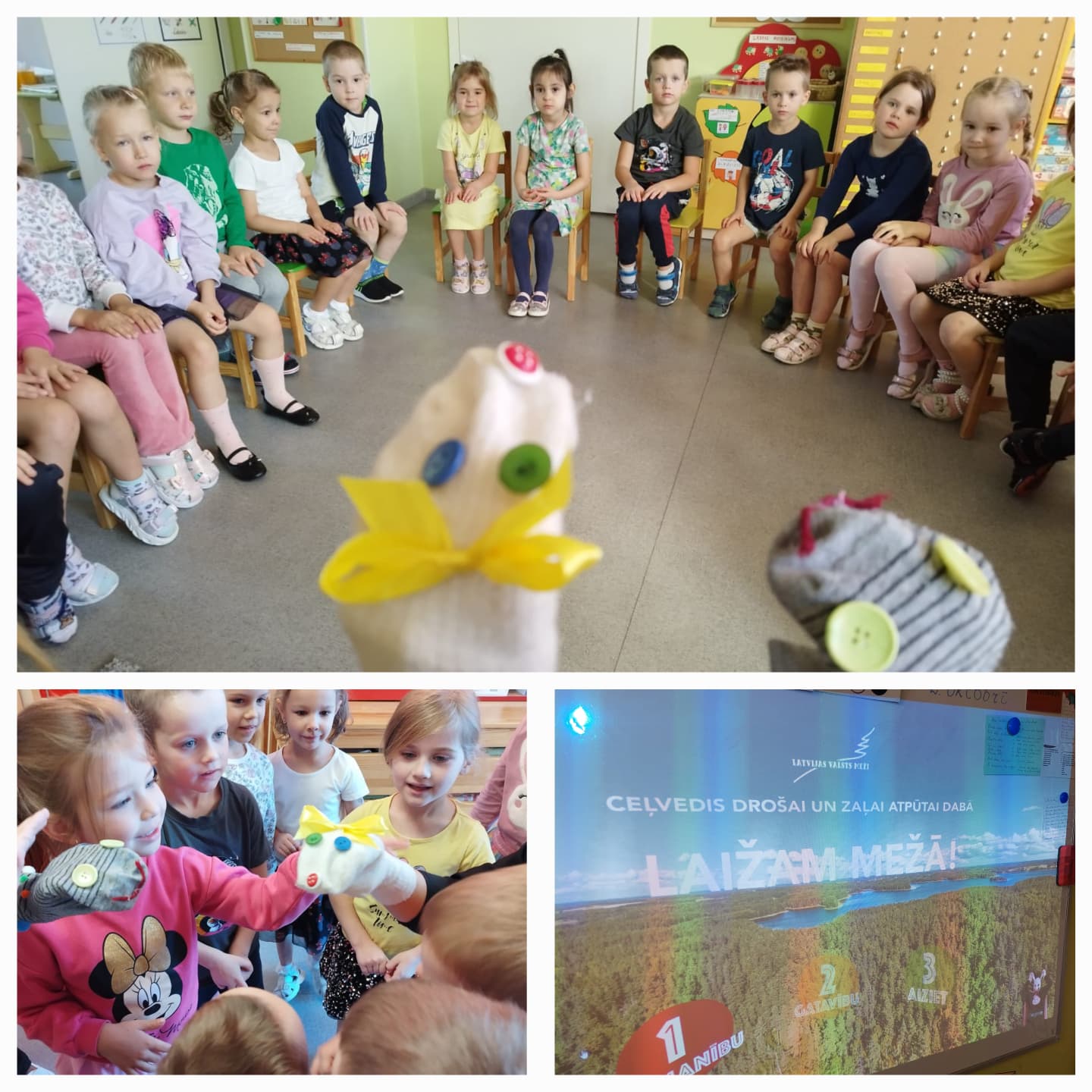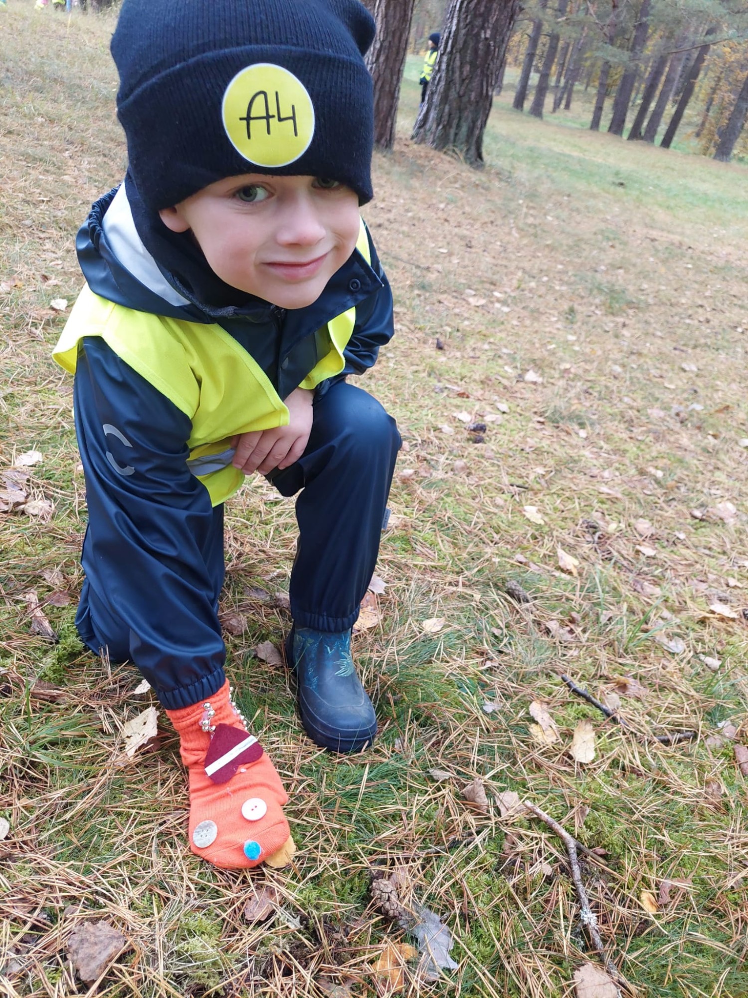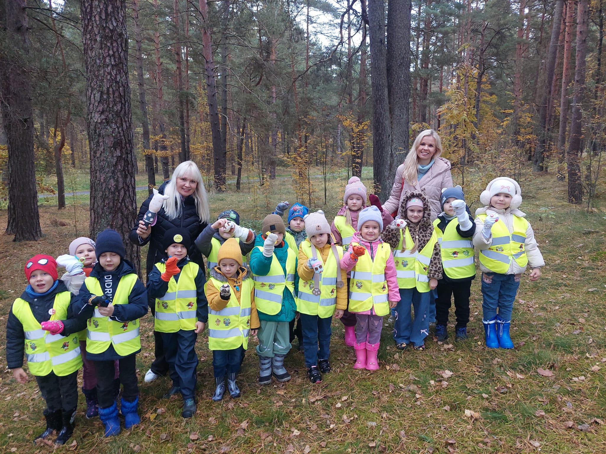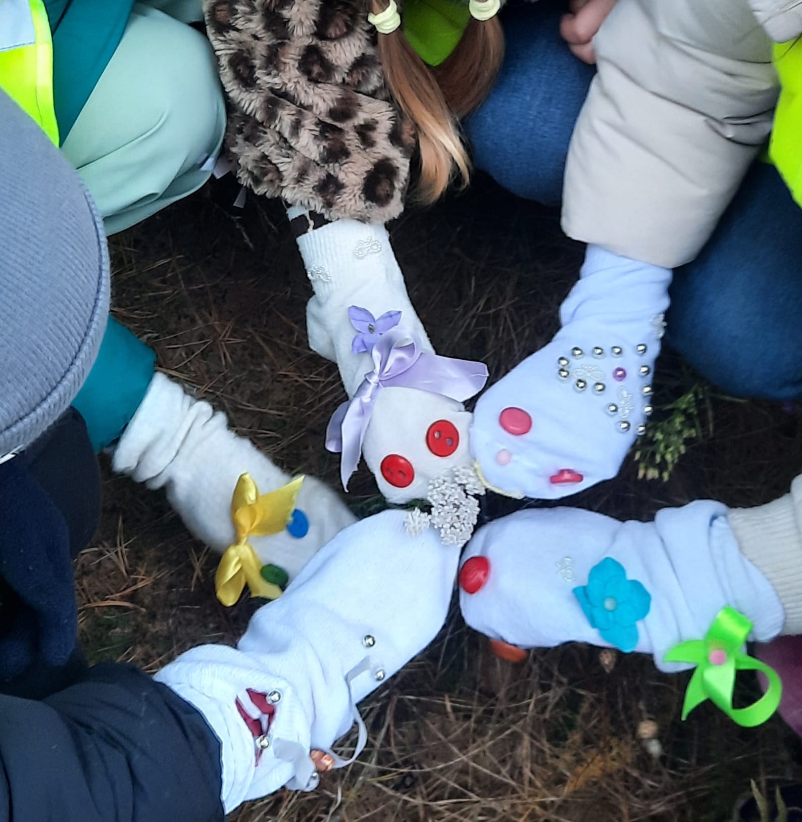 Sveiks, Cūkmen! Te atkal “Vabolītes” no DCV, Malu 7! Pēc rūpīgi paveiktajiem gatavošanās darbiņiem beidzot devāmies mūsu pirmajā ekskursijā “Rudens piedzīvojums mežā”, kuras laikā bijām mūsu līdzi paņemtajām zeķēm vislabākie pavadoņi: palīdzējām zeķītēm izzināt mežu, jautri spēlējām spēles, apguvām drošības noteikumus mežā, ķērām rudens krāsas dabā un cītīgi būvējām zeķu štābiņu, un pat atradām mežā Cūkmena apslēptos dārgumus- mini lēcas, ar kuru palīdzību varējām saskatīt vissīkākās lietas dabā. Nobeigumā sarīkojām pikniku ar pašu gatavotām sviestmaizēm un siltu tēju, protams, pēc sevis savācām visus atkritumus un izmetām atkritumu tvertnē! Bet mājās mēs aizvedām patīkamas atmiņas un “Piedzīvojumu ķērāju” pilnu ar dabas priekšmetiem!