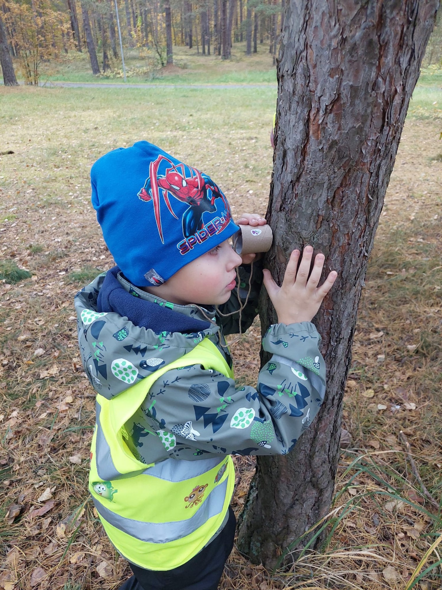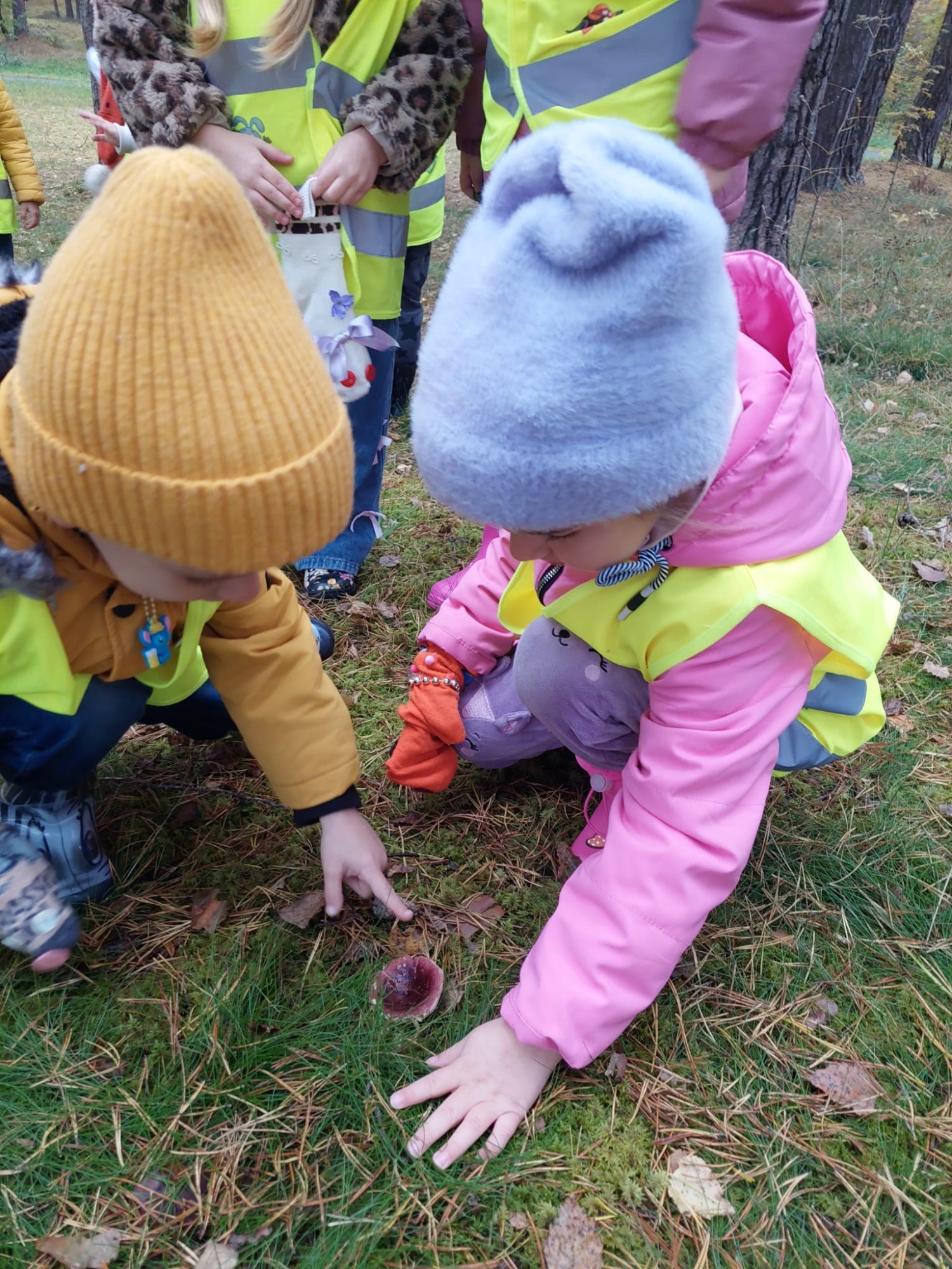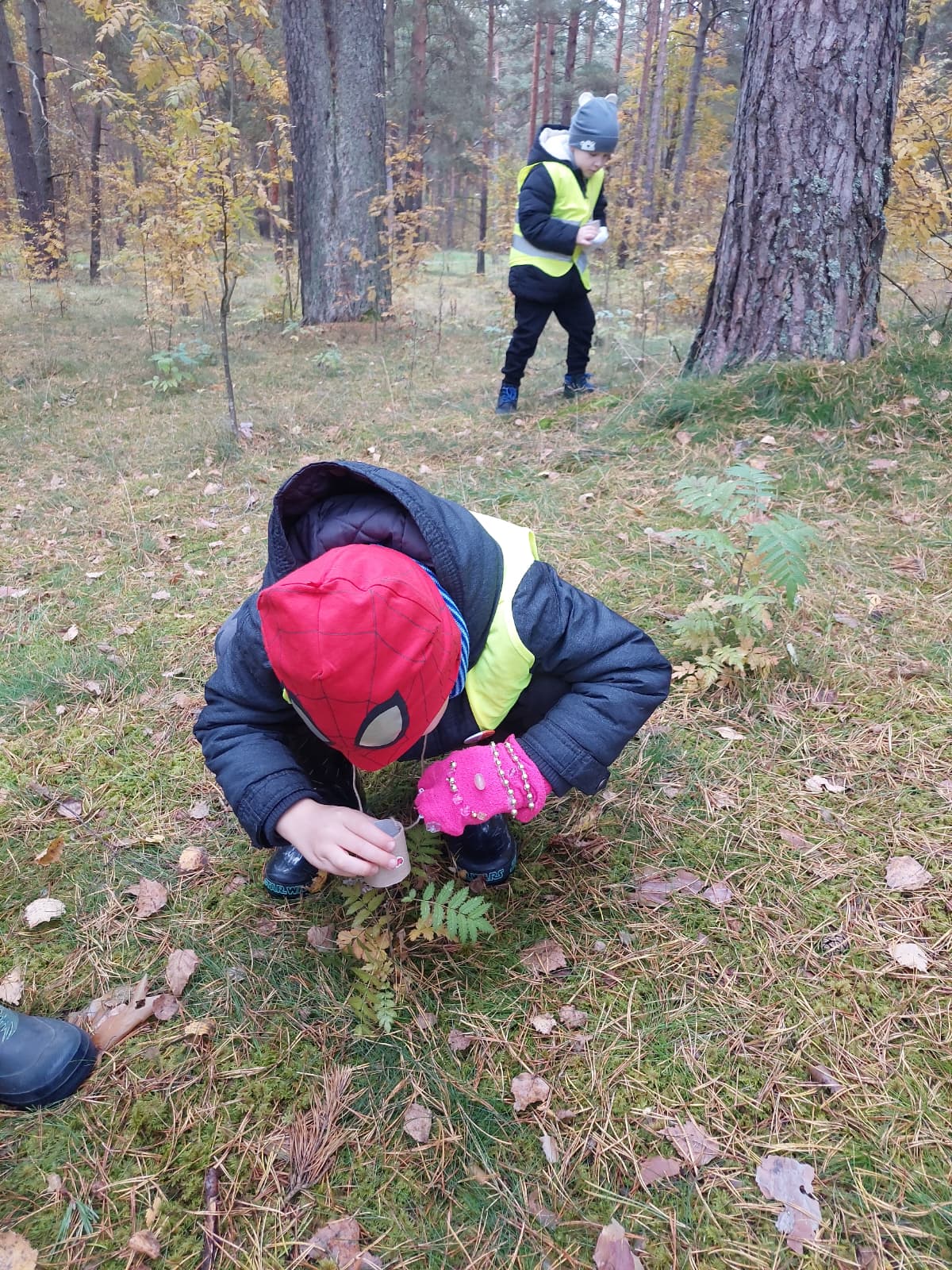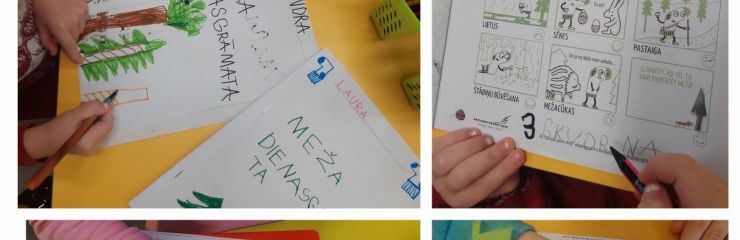 Sveiks, Cūkmen! Te atkal “Vabolītes” no DCV, Malu 7! Pēc rūpīgi paveiktajiem gatavošanās darbiņiem beidzot devāmies mūsu pirmajā ekskursijā “Rudens piedzīvojums mežā”, kuras laikā bijām mūsu līdzi paņemtajām zeķēm vislabākie pavadoņi: palīdzējām zeķītēm izzināt mežu, jautri spēlējām spēles, apguvām drošības noteikumus mežā, ķērām rudens krāsas dabā un cītīgi būvējām zeķu štābiņu, un pat atradām mežā Cūkmena apslēptos dārgumus- mini lēcas, ar kuru palīdzību varējām saskatīt vissīkākās lietas dabā. Nobeigumā sarīkojām pikniku ar pašu gatavotām sviestmaizēm un siltu tēju, protams, pēc sevis savācām visus atkritumus un izmetām atkritumu tvertnē! Bet mājās mēs aizvedām patīkamas atmiņas un “Piedzīvojumu ķērāju” pilnu ar dabas priekšmetiem!