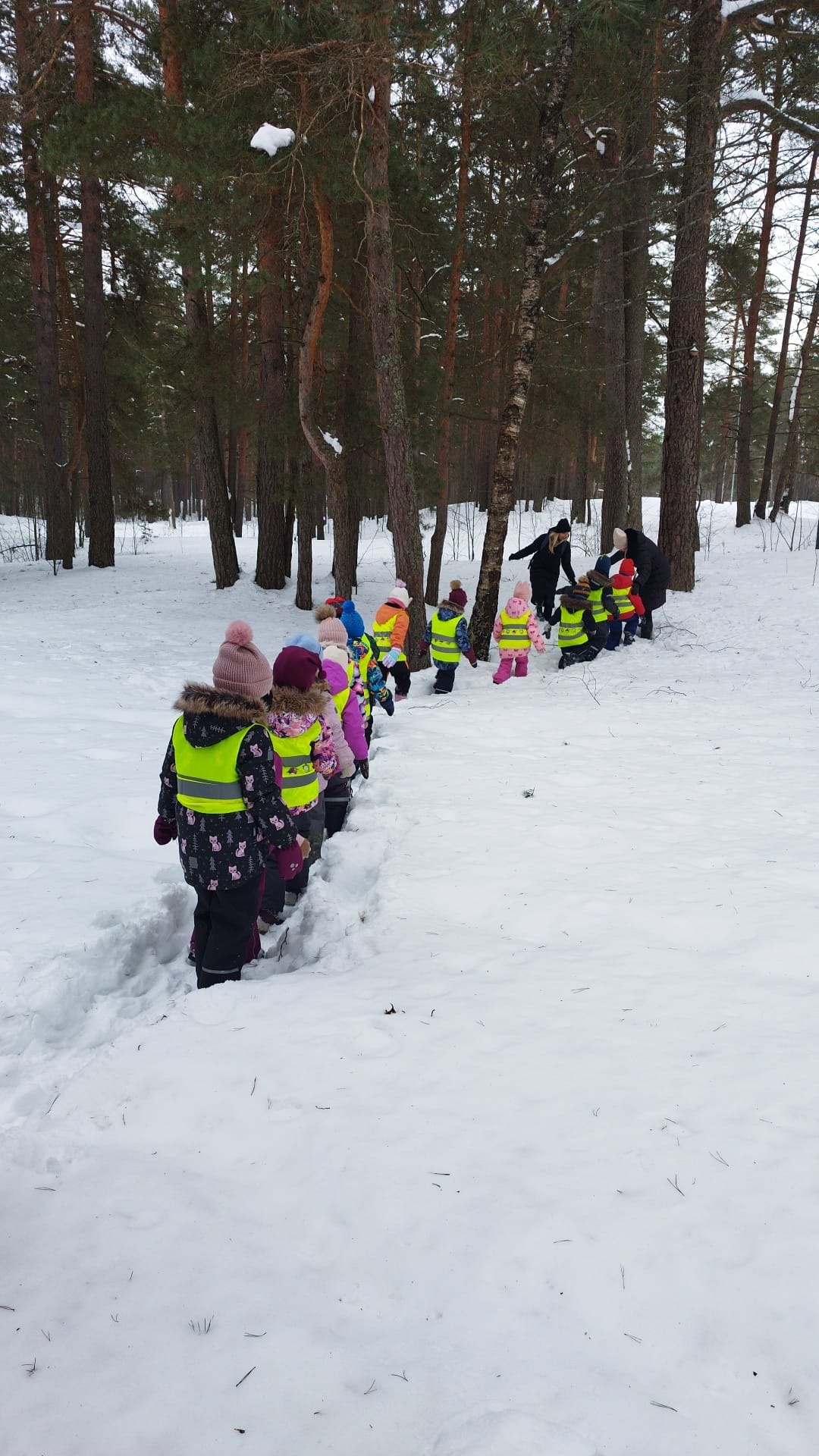 Mīļo Cūkmen, februāris mūs pārsteidza ar stipru salu un sniegu, un “Vabolītes” ļoti, ļoti gaidīja iespēju doties ziemas piedzīvojumā uz mežu.