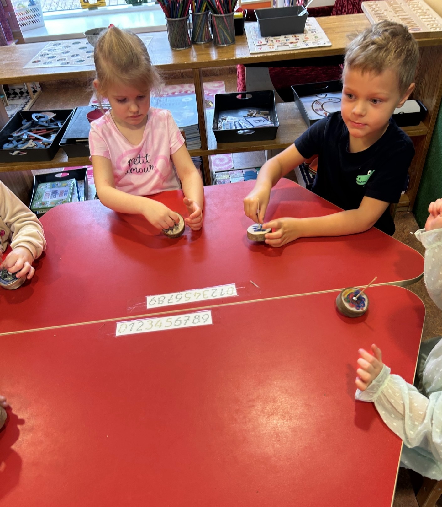 Iepazīstot tēmu “Mežs rotaļlietu kastē” mēs uzzinājām, kā aug koki, noklausījāmies pasaku par Lietaskoku un Vietaskoku un uzzinājām, ko var izgatavot no koksnes. Grupas telpā meklējām visu, kas ir izgatavots no koksnes. Īpaši mums patika nodarbība “Koka rotaļlietu darbnīca”, kuras laikā apskatījām dažādas koka rotaļlietas, ko bijām paņēmuši līdzi no mājām. Patstāvīgi izgatavojām vilciņus, kurus nokrāsojām ar košiem flomāsteriem.