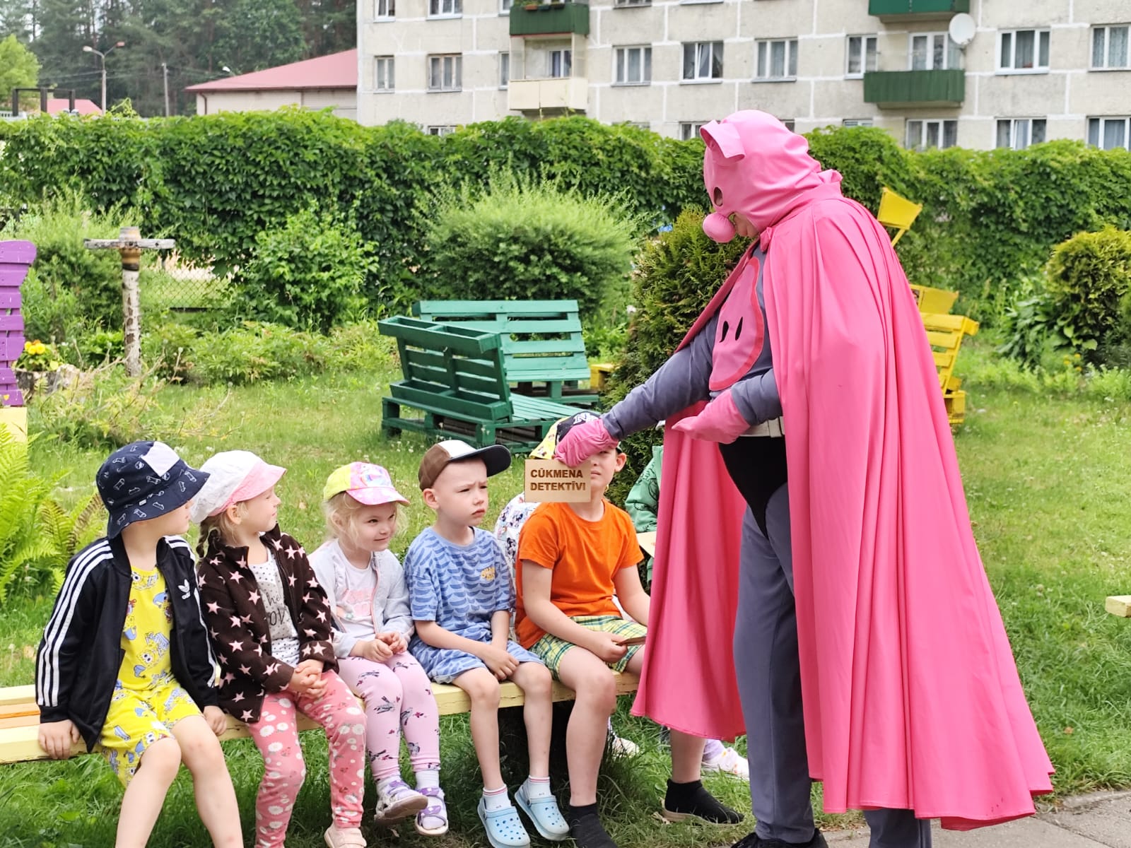 Paldies tev, ka atbrauci pie mums ciemos! Mēs ļoti priecājāmies tevi redzēt un kopā atgādināt, cik svarīgi ir sargāt dabu. Mēs apsolām arī šogad turpināt iesākto darbu – rūpēties par mūsu mežiem, sakopt bērnudārza apkārtni un nekad nemest atkritumus dabā.