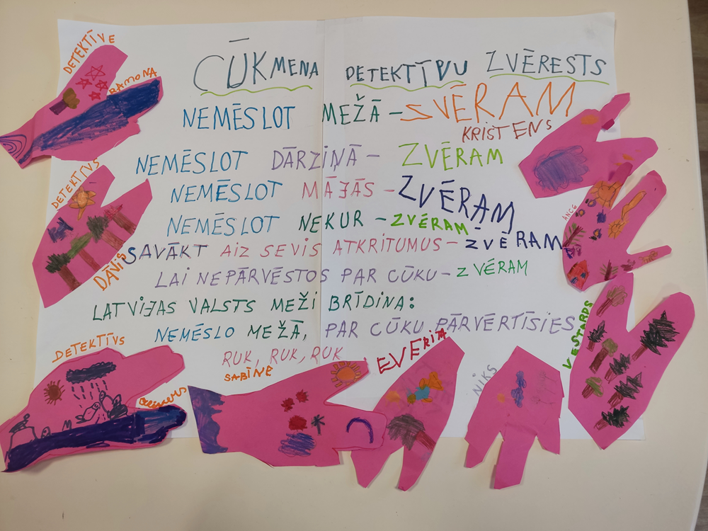 Mēs esam noklausījušies stāstus “Melanholiskā plēve” un “Smagais lūznis”, veidojuši Cūkmena zvēresta plakātu, šķirojuši materiālus un noskaidrojuši, kam jāatrodas mežā un kam – atkritumu tvertnē.