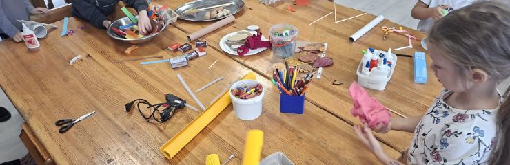 Darbojoties kopā, bērni attīstīja sadarbības prasmes, sīko motoriku, pacietību un radošumu, kā arī paplašināja zināšanas par ilgtspēju un resursu taupīšanu.