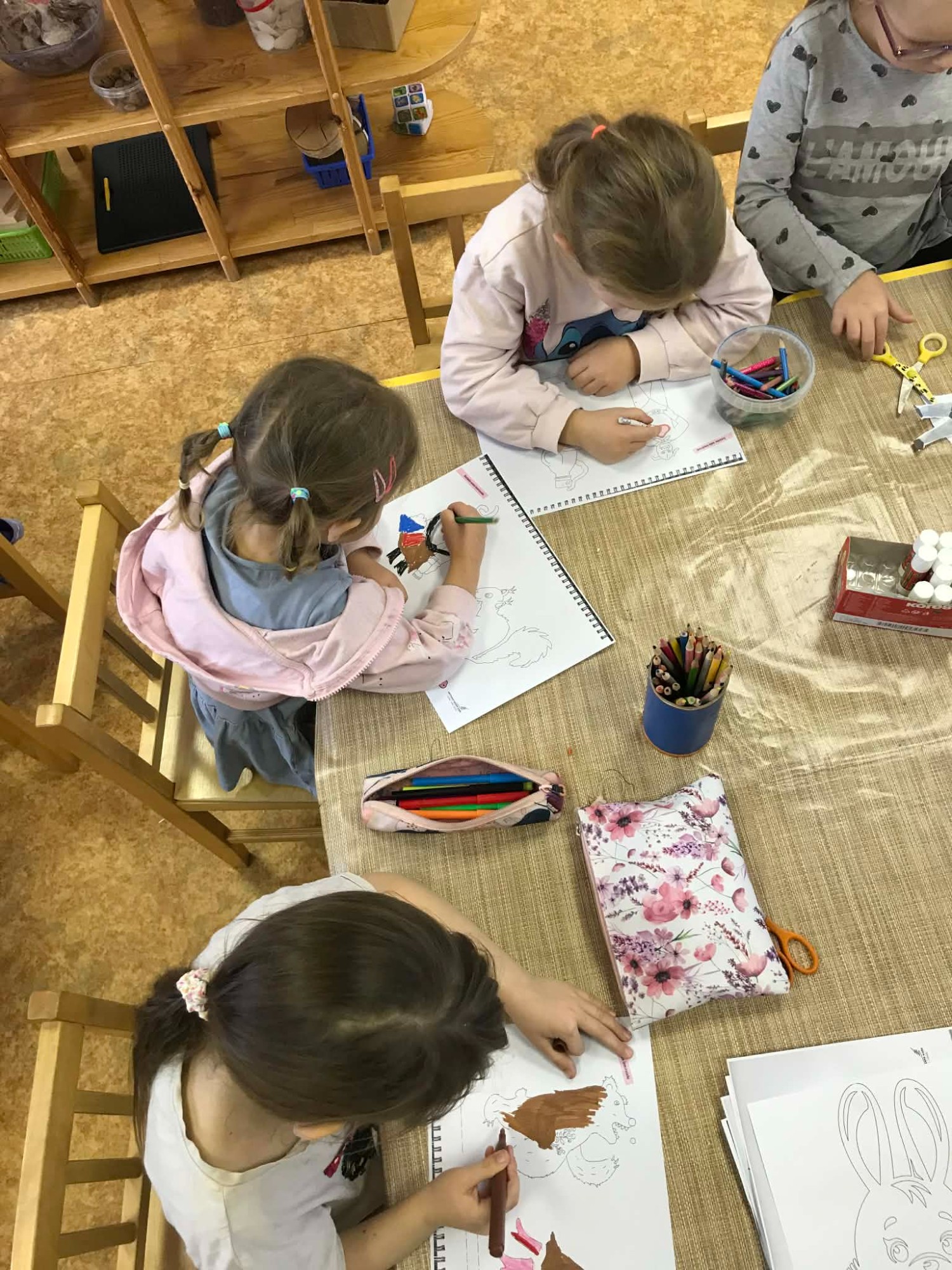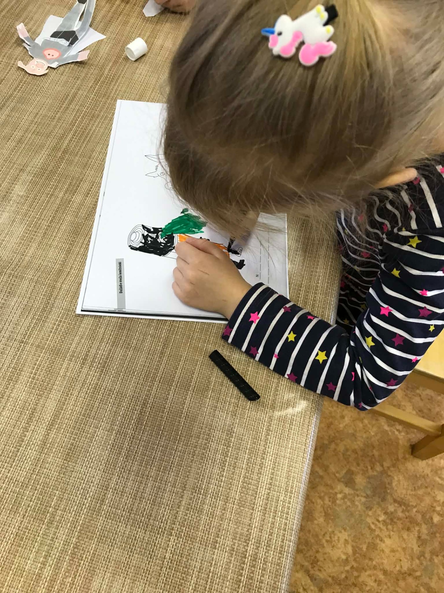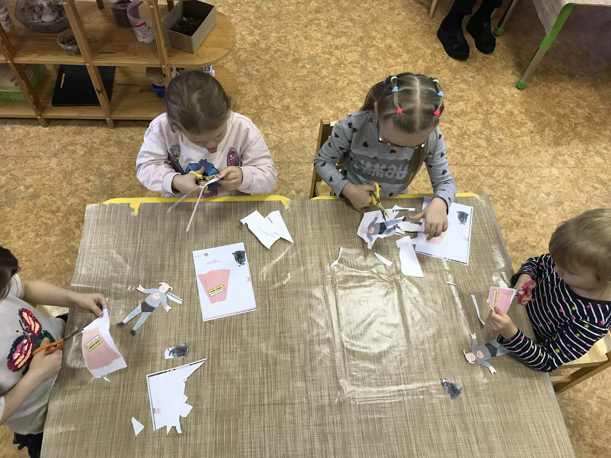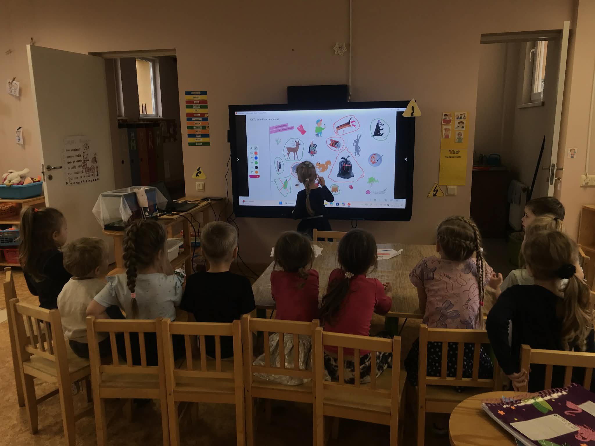 Ziņojam, ka esam noslēguši pirmo tēmu un iepazinušies ar visiem "Meža netīrajiem noslēpumiem". Noklausījāmies atlikušos stāstus par atkritumiem, un krāsojām gan atkritumus, gan meža zvērus. Pēc tam bērni ar priecīgu un bēdīgu smaidiņu atzīmēja un stāstīja pārējiem, kam ir vieta mežā un, kam - nē. Visvairāk bērniem patika veidot Cūkmena lellītes, kuras viņi gatavoja ar lielu atbildību un rūpību. Bērni bija sajūsmā, kad teicām, ka lellītes jānes mājās un par Cūkmenu jāpastāsta arī ģimenei. Viņi šo uzdevumu uztvēra ļoti nopietni un savā starpā jau sāka pārrunāt, ko stāstīt ģimenei vakarā, kad dosies mājās.