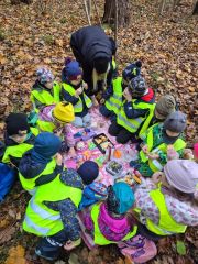 - Grupā katrs izveidojām meža dienasgrāmatas vāku, kurā bērni attēloja savas gaidas un sajūtas par tuvojošos piedzīvojumu. Katram bērnam bija arī iespēja uzzīmēt savu īpašo zeķi, kas viņam dosies līdzi mežā – krāsainu, rakstainu un pilnu ar bērnu iztēli.