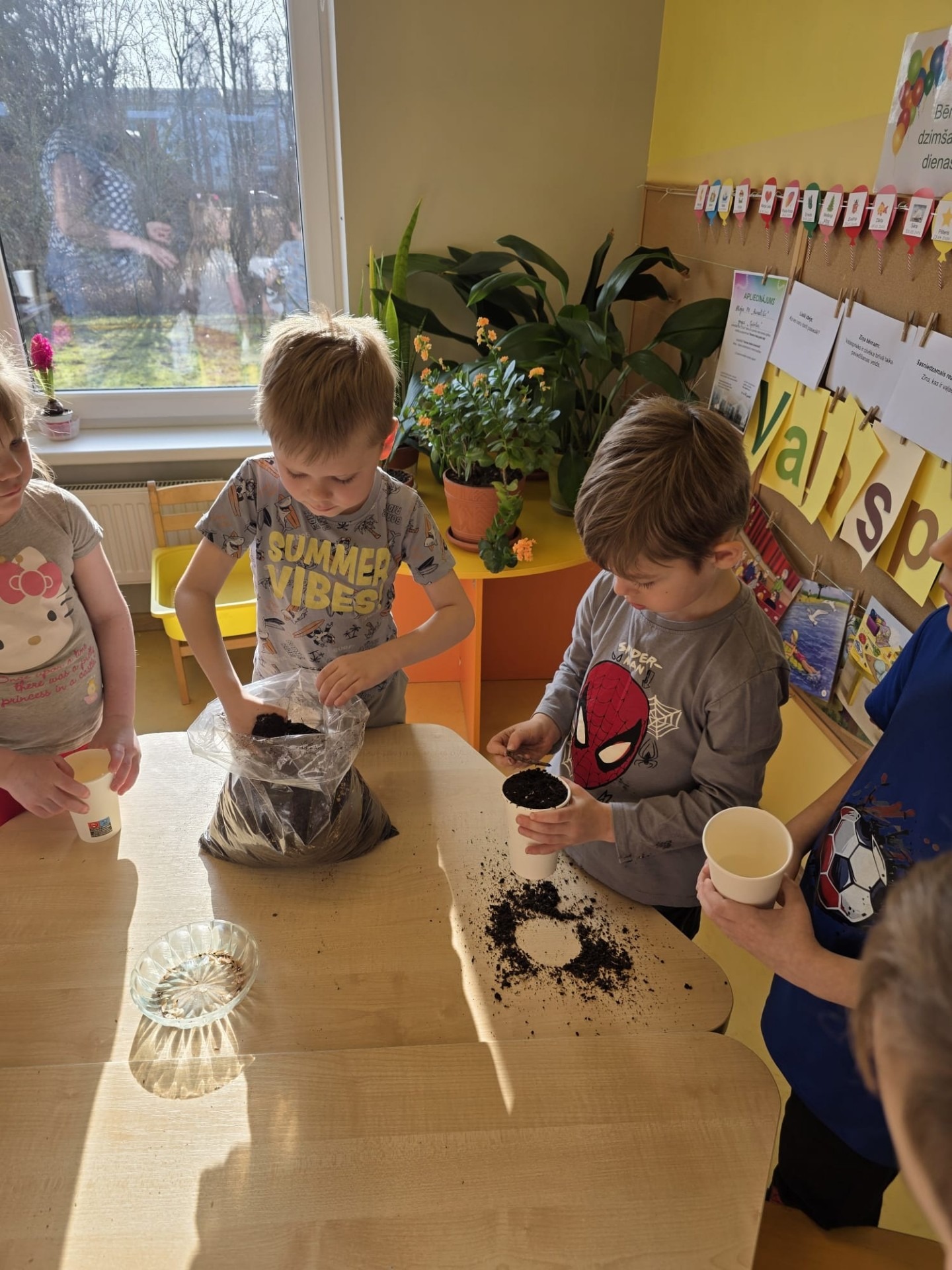 Bērni uzzināja, kā aug koki un paši iesēja egles. Kopā ar vecākiem izgatavoja rotaļlietas, stāstīja par tām un ar tām rotaļājās.
