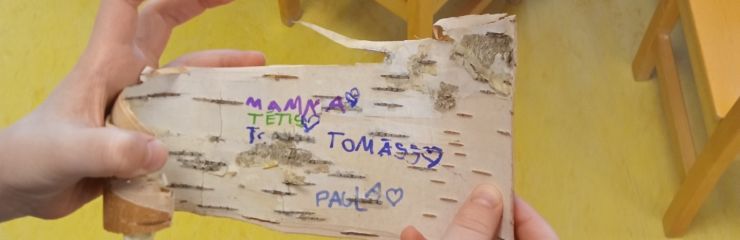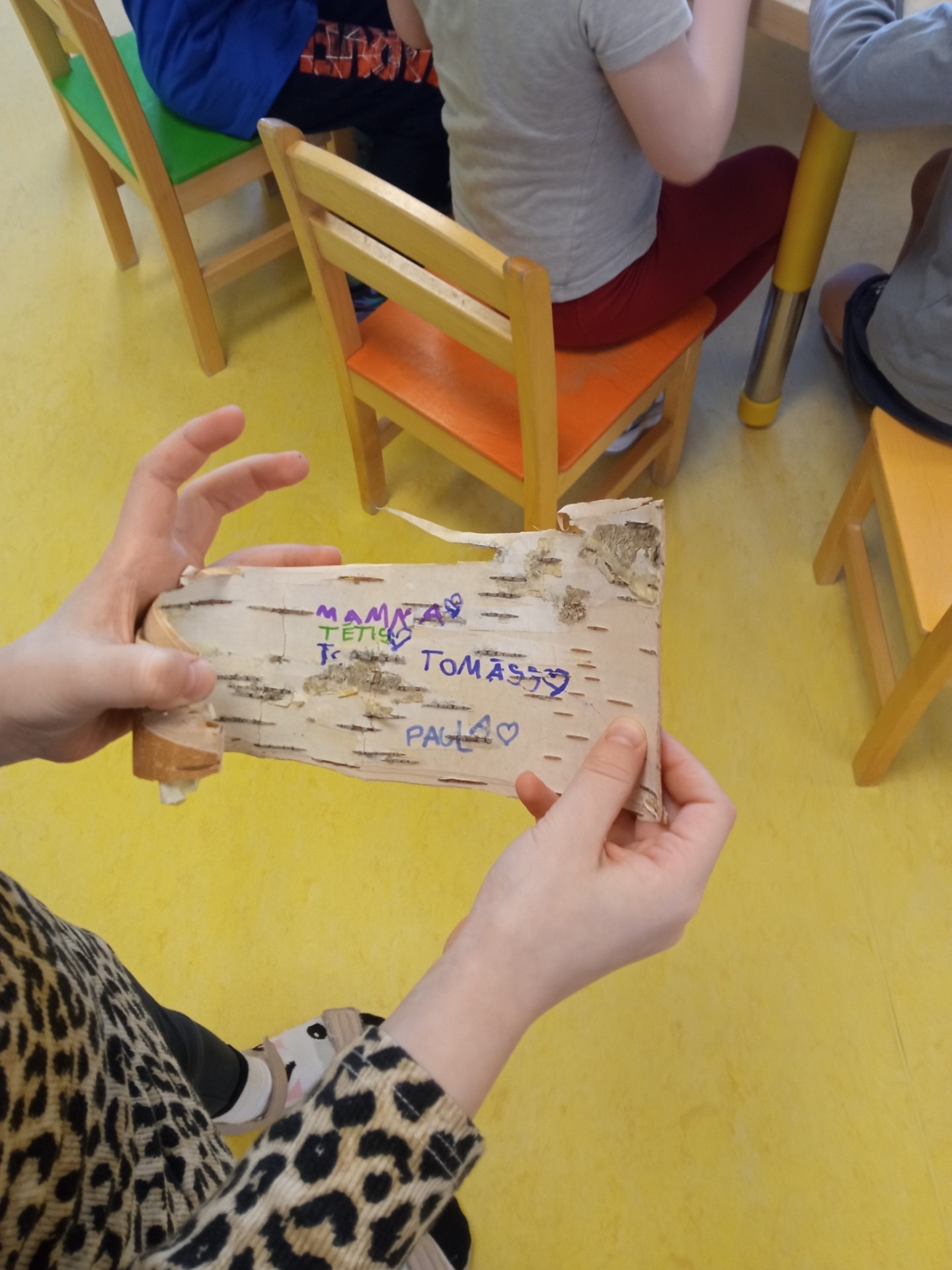 Bērni pamēģināja rakstīt un zīmēt uz bērza tāss, un atzina to par jauku nodarbi.