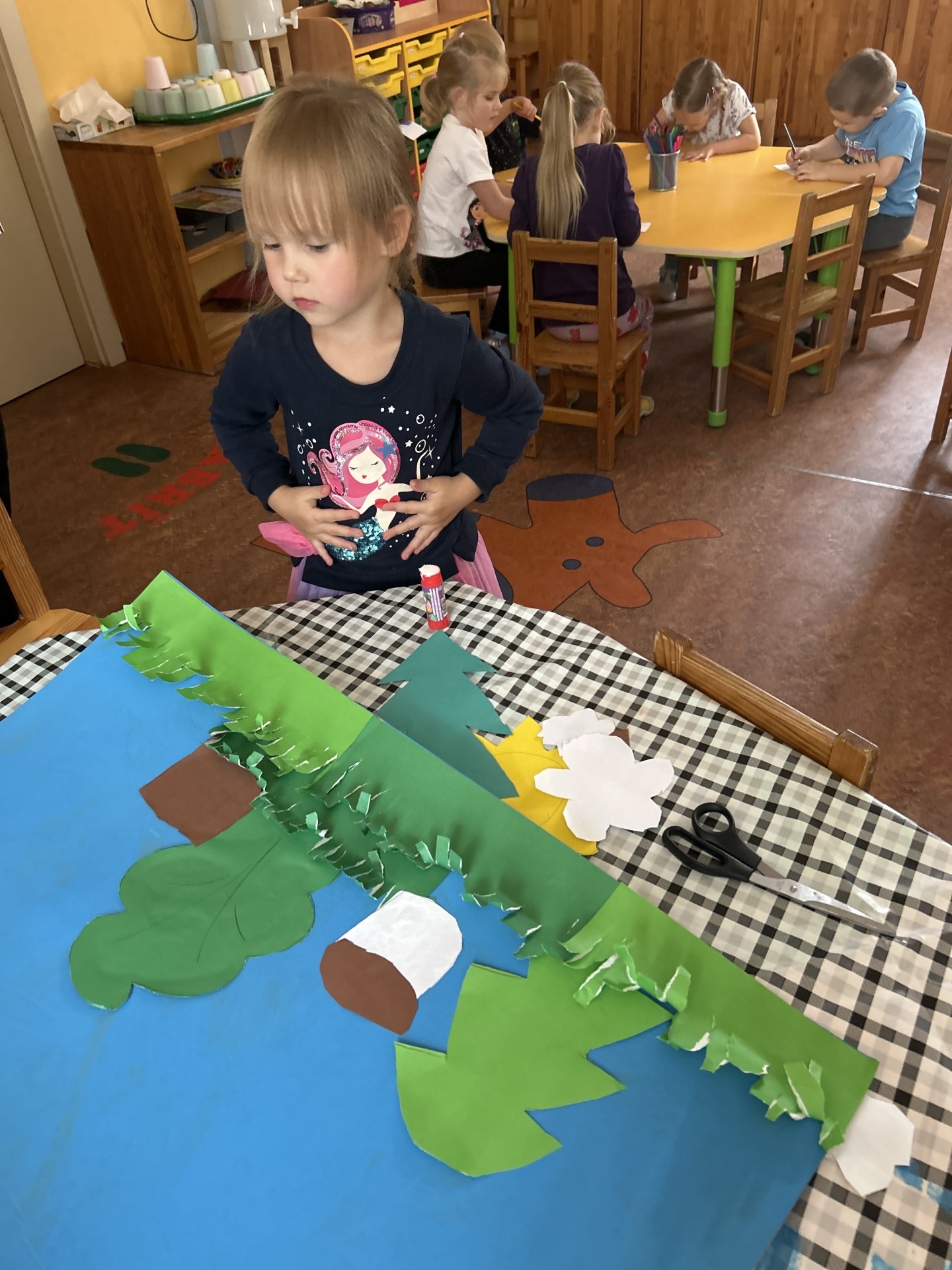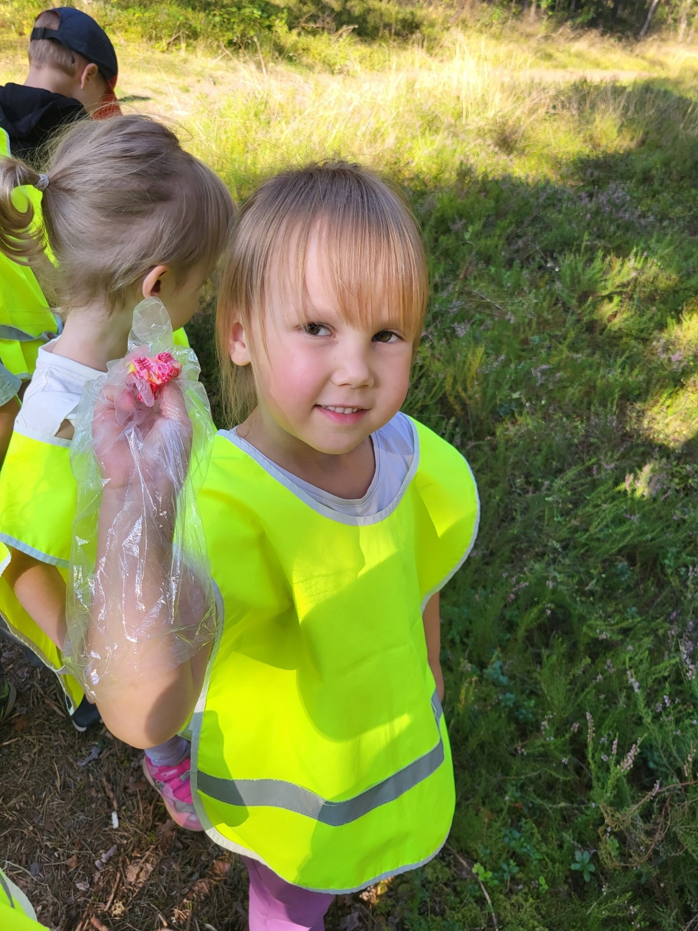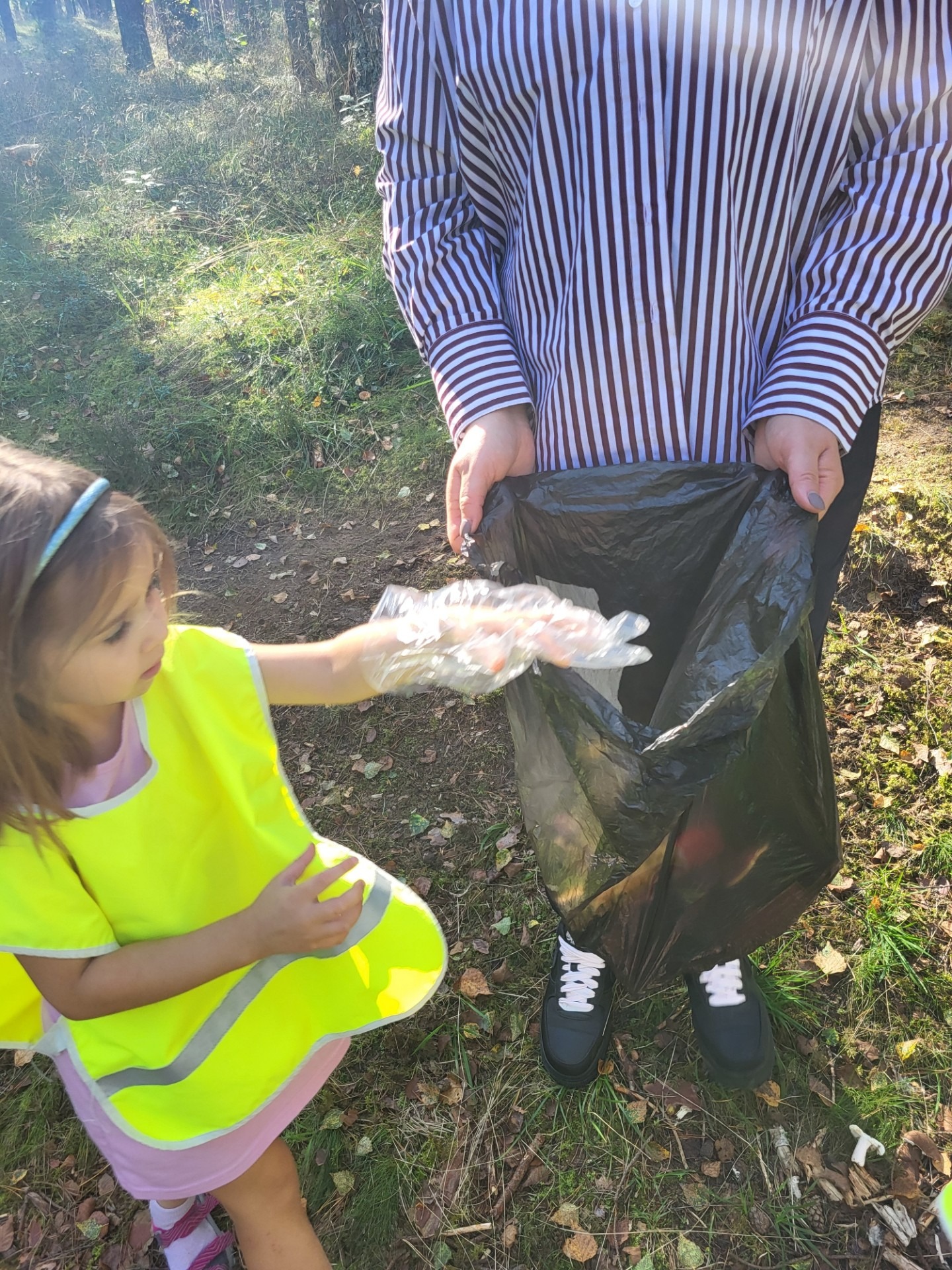Vienā no tām nodarbībām bērni iepazinās ar Cūkmenu, iepazina atkritumu veidus, izveidoja uz papīra savu mežu un lai nostiprinātu apgūtās zināšanas, devās uz mežu meklēt meža netīros noslēpumus. Mežā bērni atrada un patstāvīgi nofotografēja daudz atkritumus, kā arī savāca tos maisiņos. Atgriežoties dārziņā, mēs izprintējām visu atrasto atkritumu attēlus un izveidojām no tiem kolāžu.