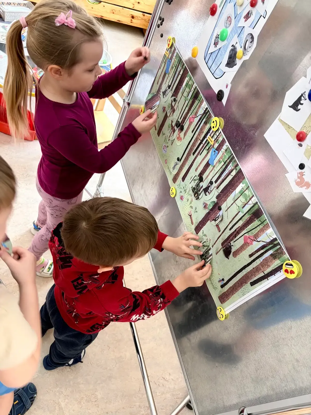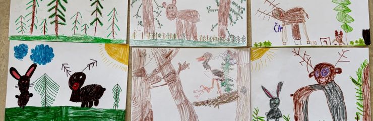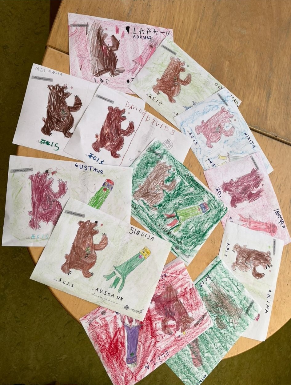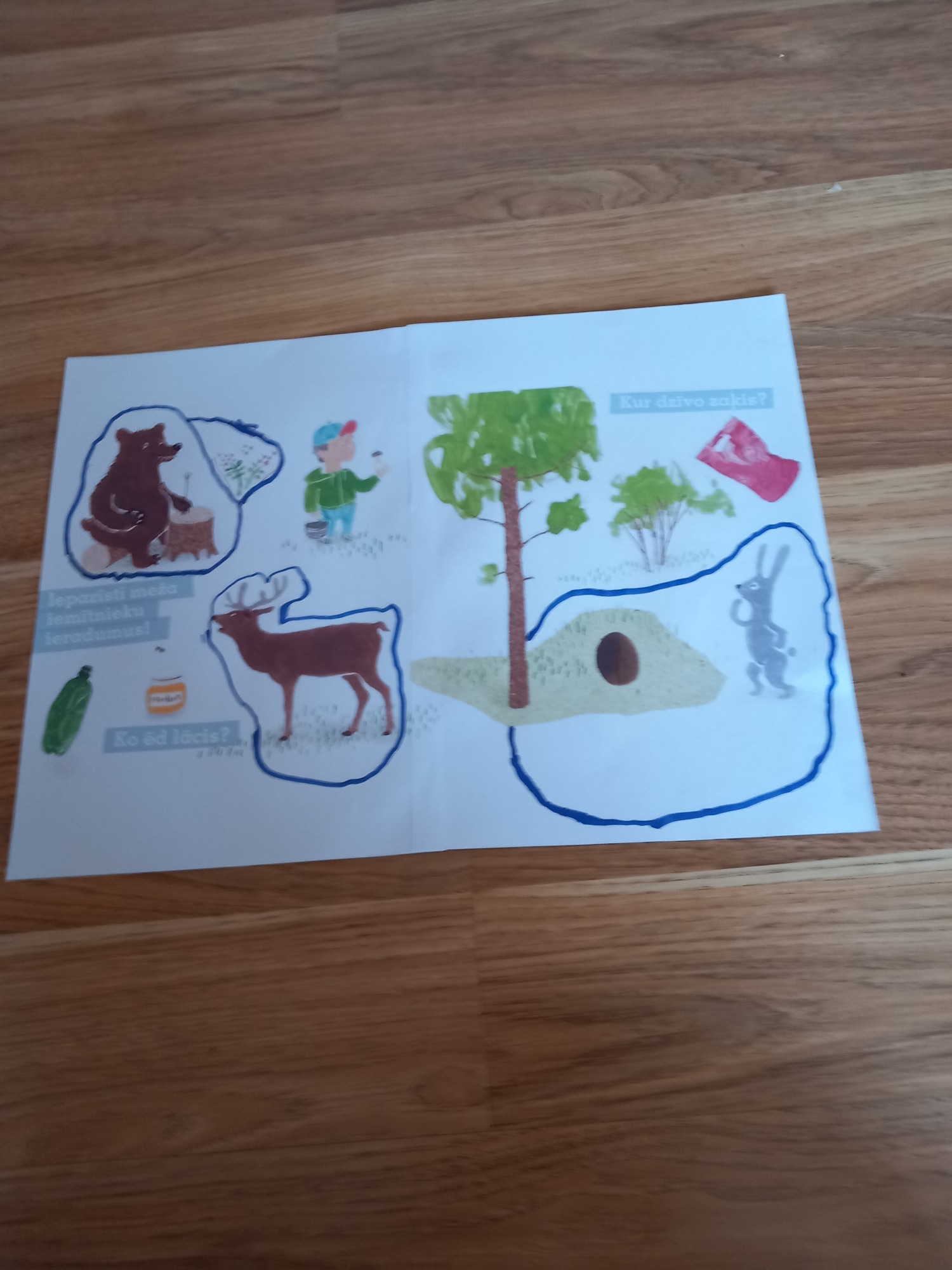 Izlasījām arī stāstu "Meža draugi". Iepazināmies ar galvenajiem tēliem, izpētījām tos un mēģinājām paši uzzīmēt stāstu! Un mums izdevās! Tagad šis stāsts dzīvo uz mūsu grupas sienas un katru dienu sveicina mūs.