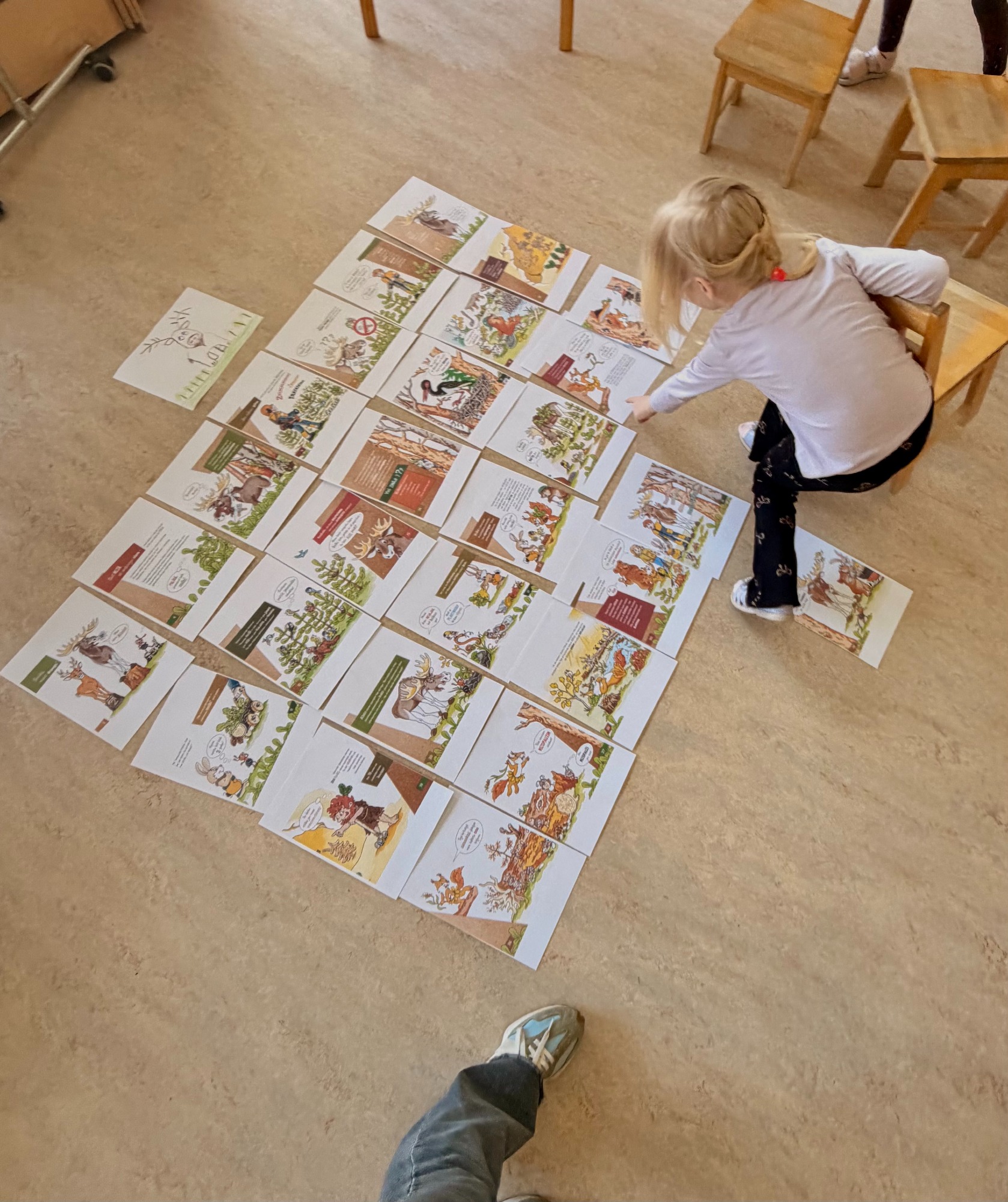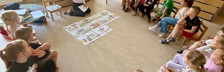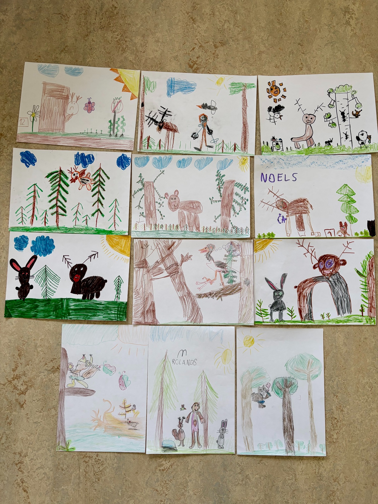 Izlasījām arī stāstu "Meža draugi". Iepazināmies ar galvenajiem tēliem, izpētījām tos un mēģinājām paši uzzīmēt stāstu! Un mums izdevās! Tagad šis stāsts dzīvo uz mūsu grupas sienas un katru dienu sveicina mūs.