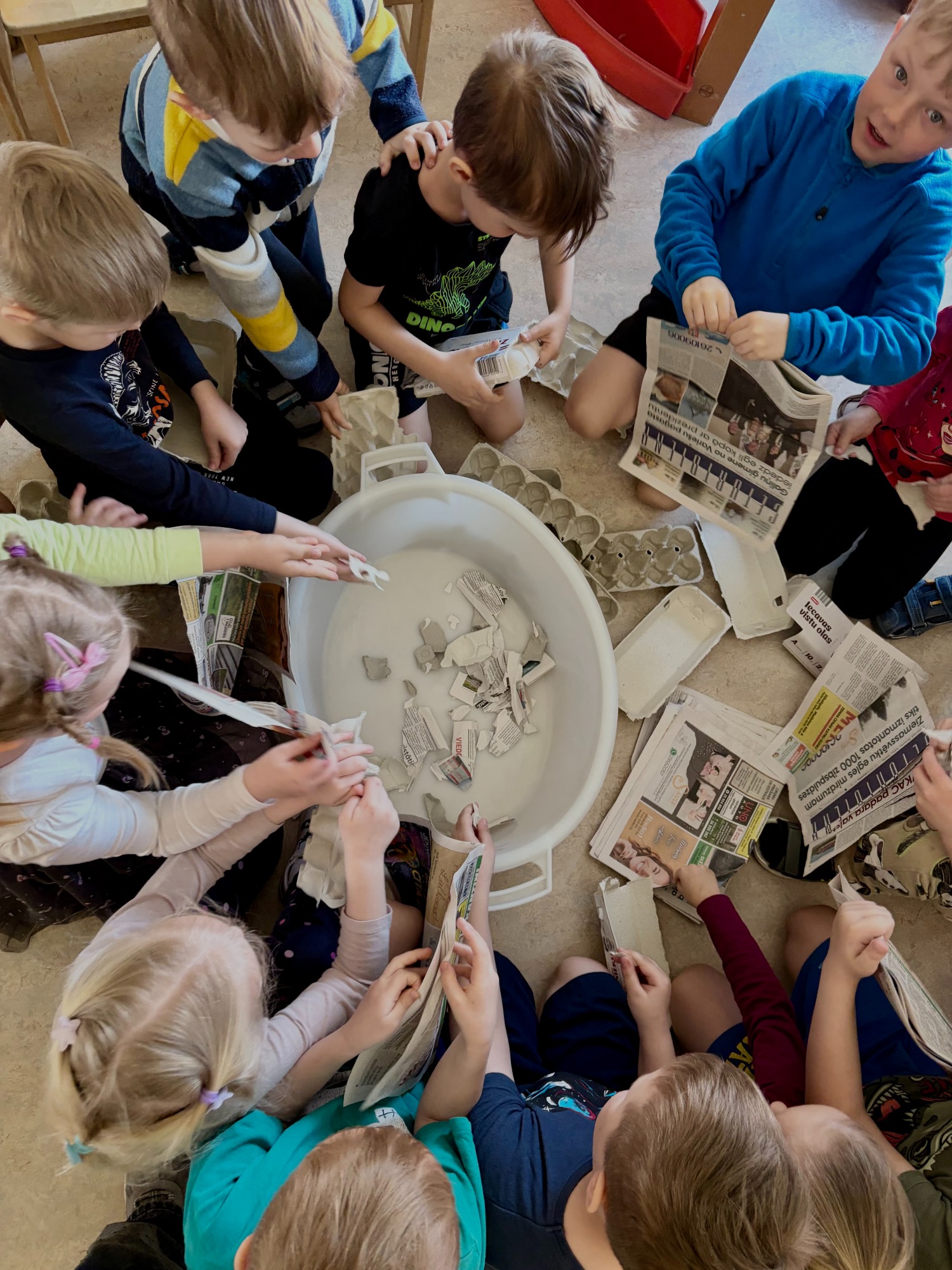 Mums ļoti patika eksperiments, kurā bija jātaisa papīrs. Ar prieku un lielu jautrību plēsām avīzes un olu kastes. Tas tik bija piedzīvojums! Pētījām, kā tās mirkst ūdenī un ar nepacietību gaidījām, kāds būs gala rezultāts. Mēs vēlamies atzīties, ka kaut ko tomēr izdarījām nepareizi un mums papīrs zīmēšanai nesanāca. Tas pielipa pie sieta un mēs to nespējām noņemt nost. Bet tas mūs neapstādināja un mēs turpinājām pildīt tavus uzdevumus.