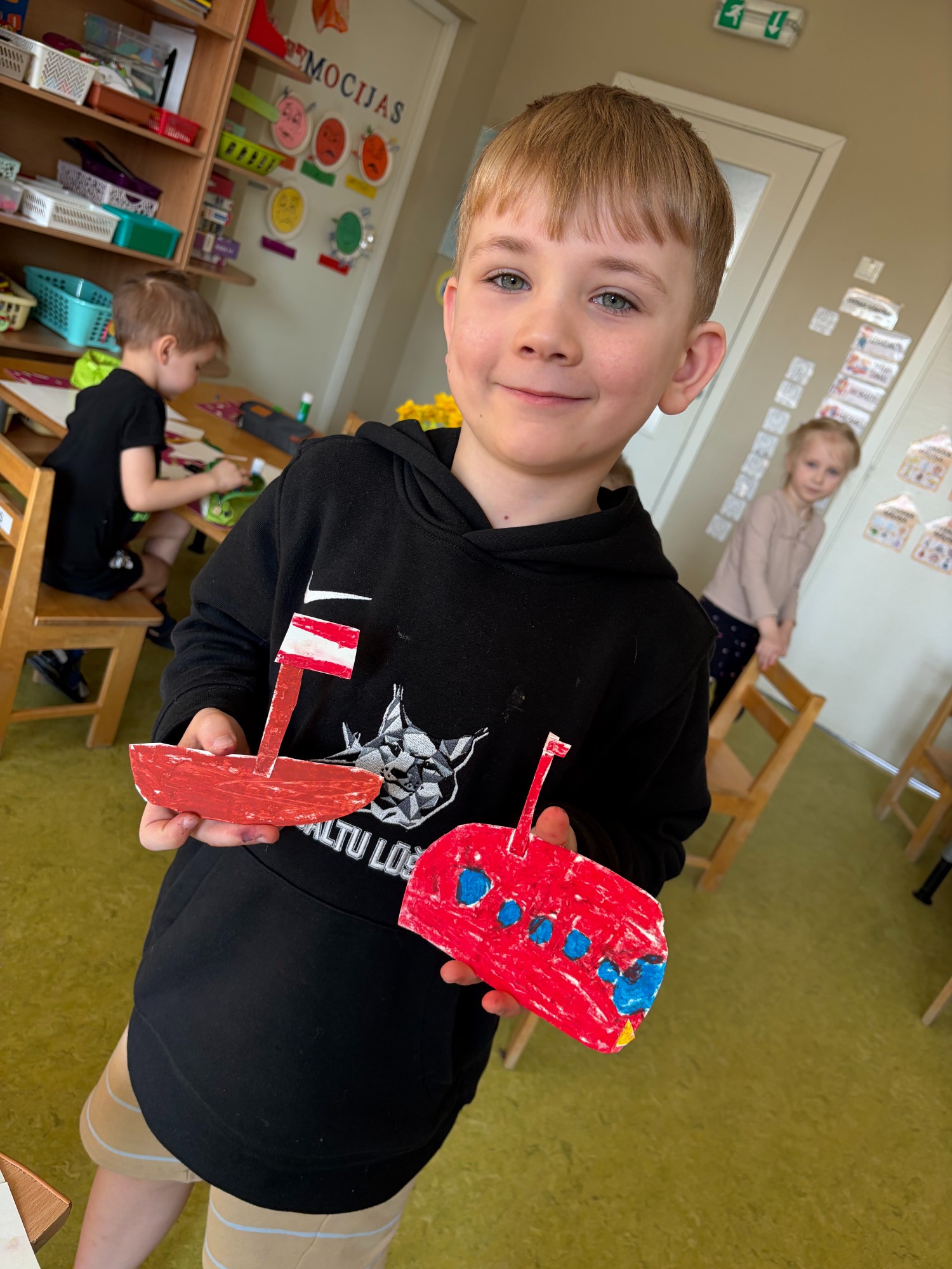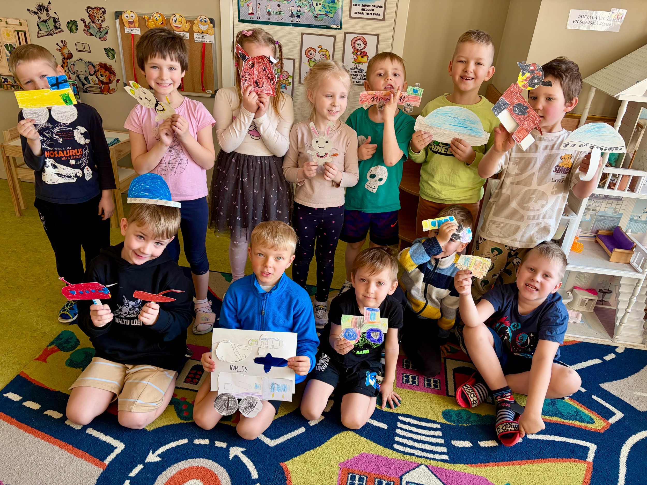 Ar vislielāko interesi mēs darbojāmies rotaļlietu darbnīcā, kurā no kartona tapa dažādas lietas - mašīnas, zaķi, zemūdene un pat citplanētiešu kuģi. Bērni darbojās paši un izgatavotās rotaļlietas rādīja saviem grupas biedriem. Tā bija ļoti pozitīva pieredze.